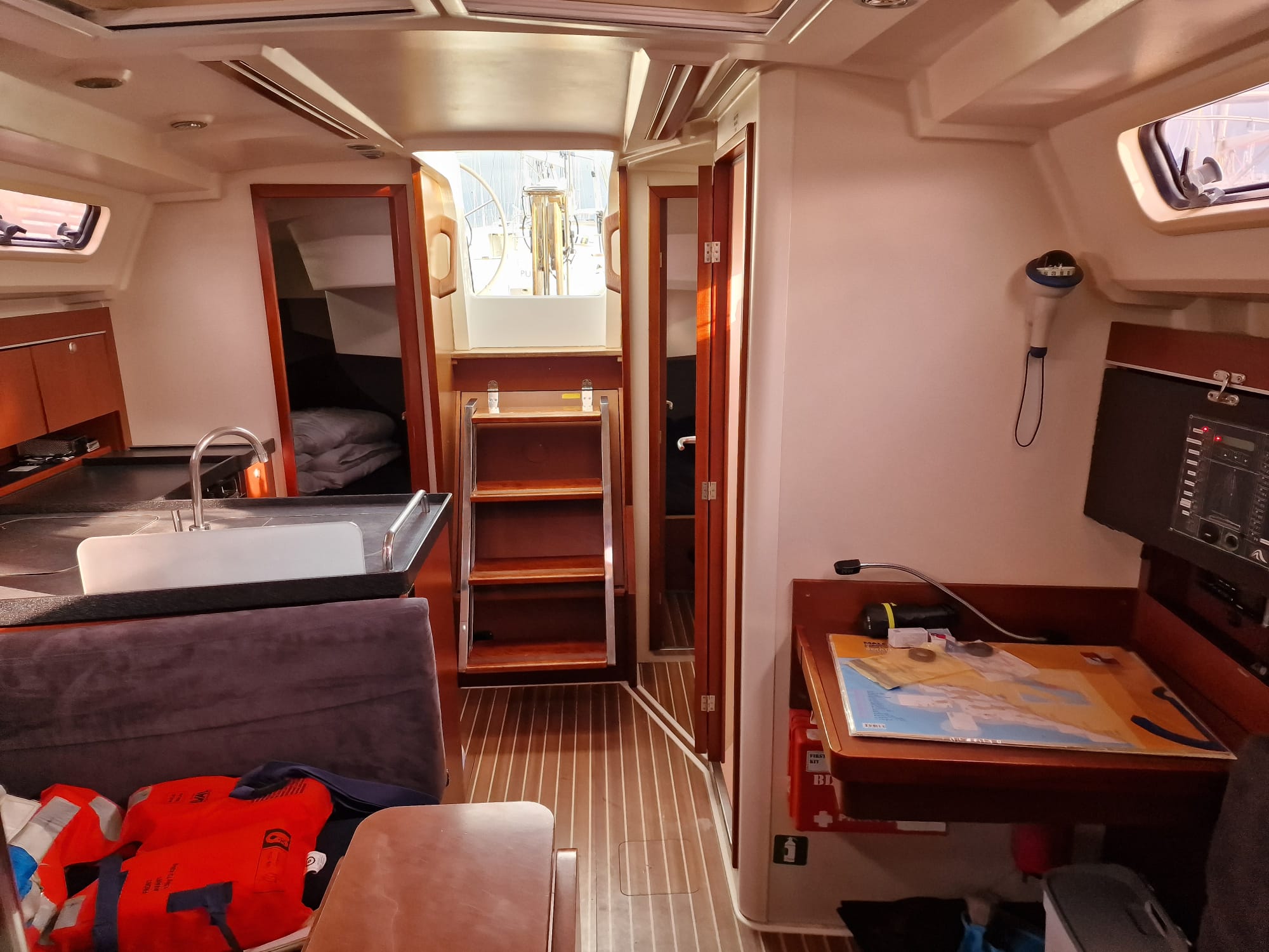 | Safety | Autopilot, Bordapotheke, Bordwerkzeug, Feststoffschwimmwesten, Feueraxt, Feuerlöscher, Notpinne, Rettungskragen, Taschenlampe, UKW-Funk |
