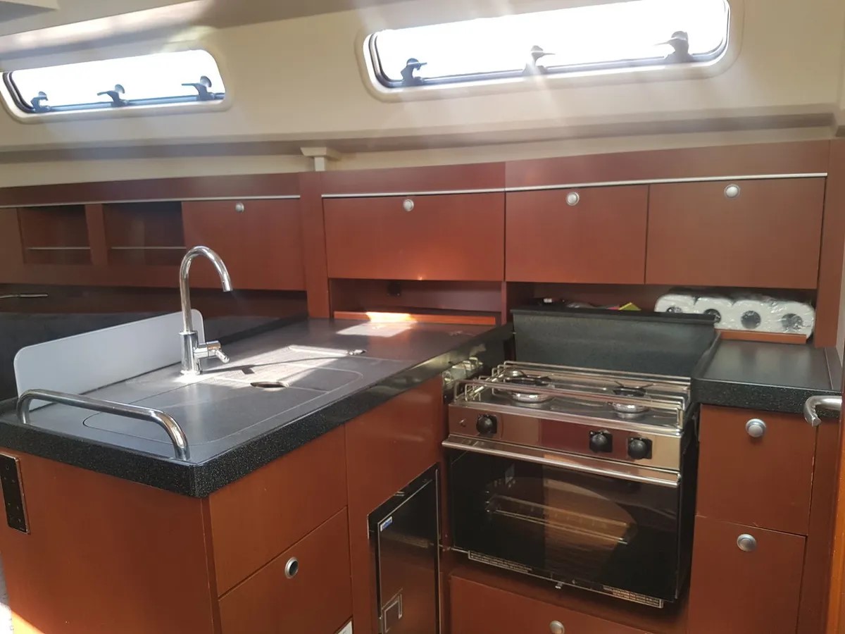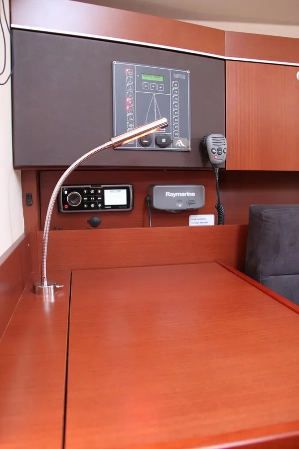 | Outside | 12 V-Anschluss, 220 V-Landanschluss, Anker mit Kette, Badeleiter, Badeplattform, Biminitop, Cockpitdusche, Cockpitlautsprecher, Cockpittisch, elektr. Ankerwinsch, Fender, Festmacherleinen, Sprayhood, Unterwasserbeleuchtung, Windex |