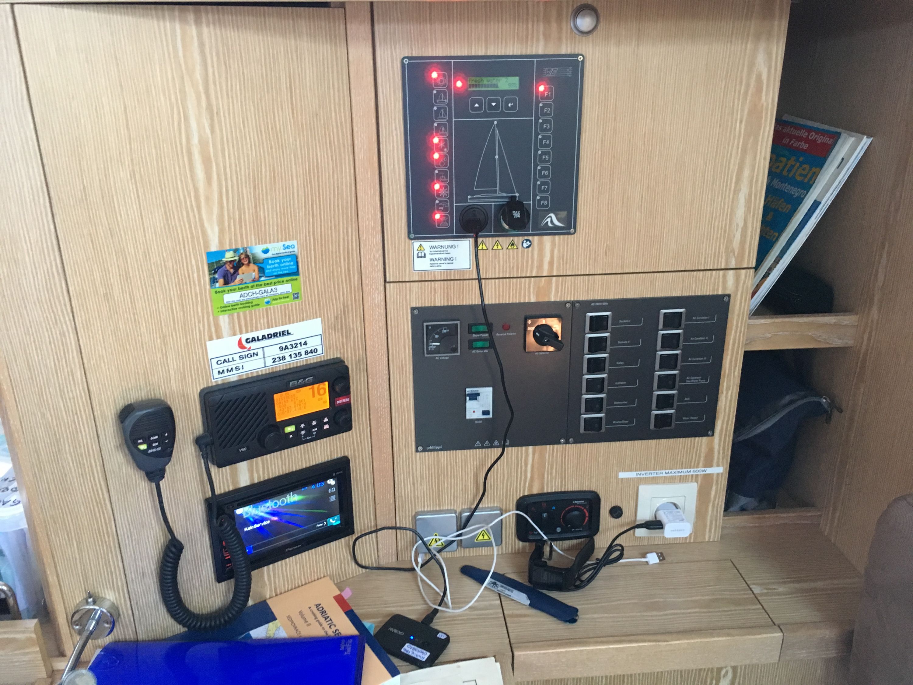 | Safety | Autopilot, Bordapotheke, Bugstrahlruder, elektr. Bilgepumpe, Feststoffschwimmwesten, GMDSS, Leuchtboje, Licht und Leine für Rettungskragen, Lifebelts, Notpinne, Notsignale, Rettungsinsel, Taschenlampe, UKW-Funk |