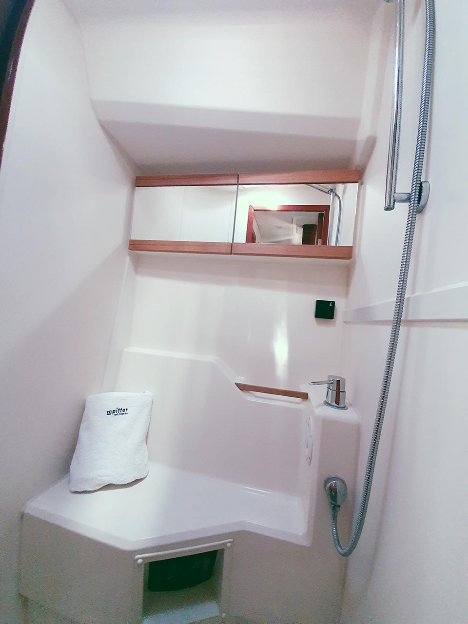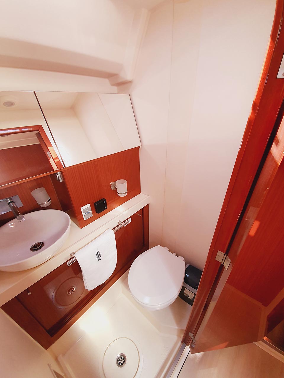 | Inside | 2. Kühlschrank, Borduhr, FUSION Sound System, Heizung, Inverter 12V/220V, Kühlschrank, Ladegerät, Luftpumpe für Beiboot, Mikrowelle, Pantryausstattung, Radio mit Bluetooth, USB Steckdose, Warmwasser, WC (elektr.) |