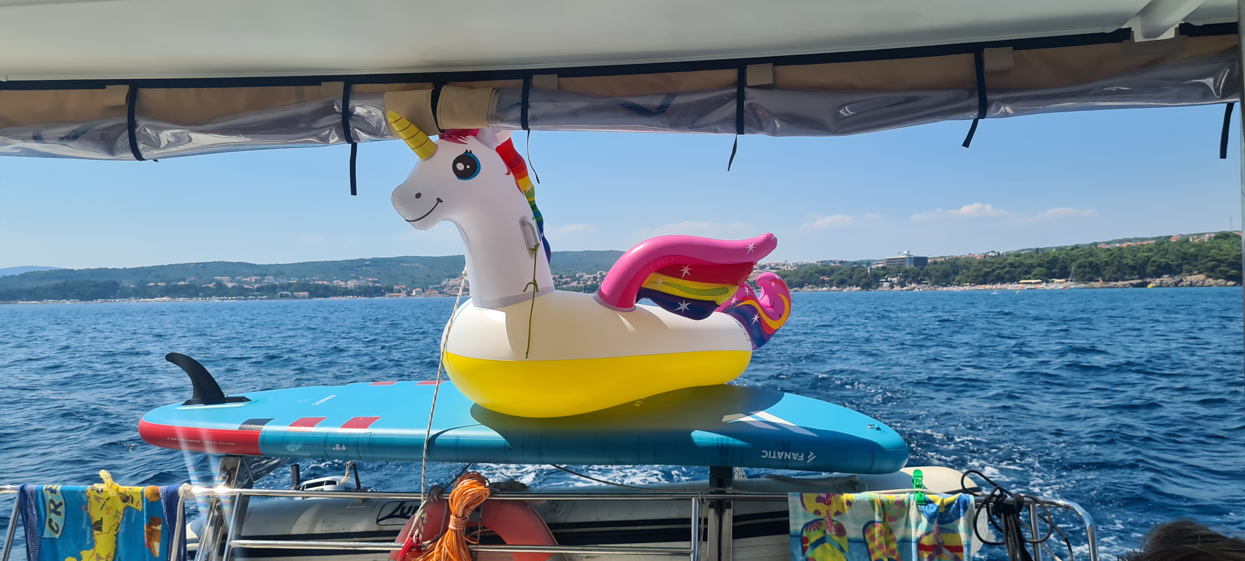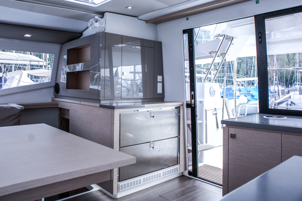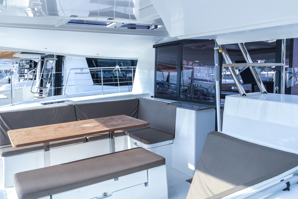 | Outside | 12 V-Anschluss, Badeleiter, Biminitop, Cockpitdusche, Cockpitlautsprecher, Cockpitpolster, Cockpittisch, elektr. Ankerwinsch, Fender, Festmacherleinen, Selbstholende Winschen, Sprayhood, Windex |