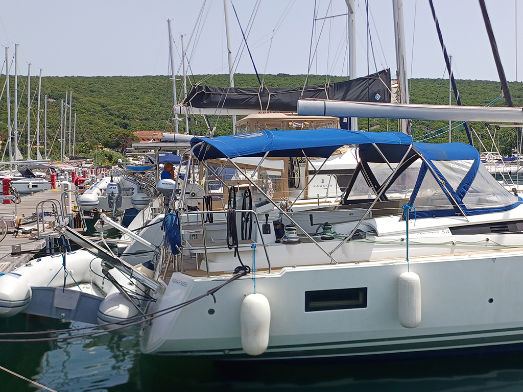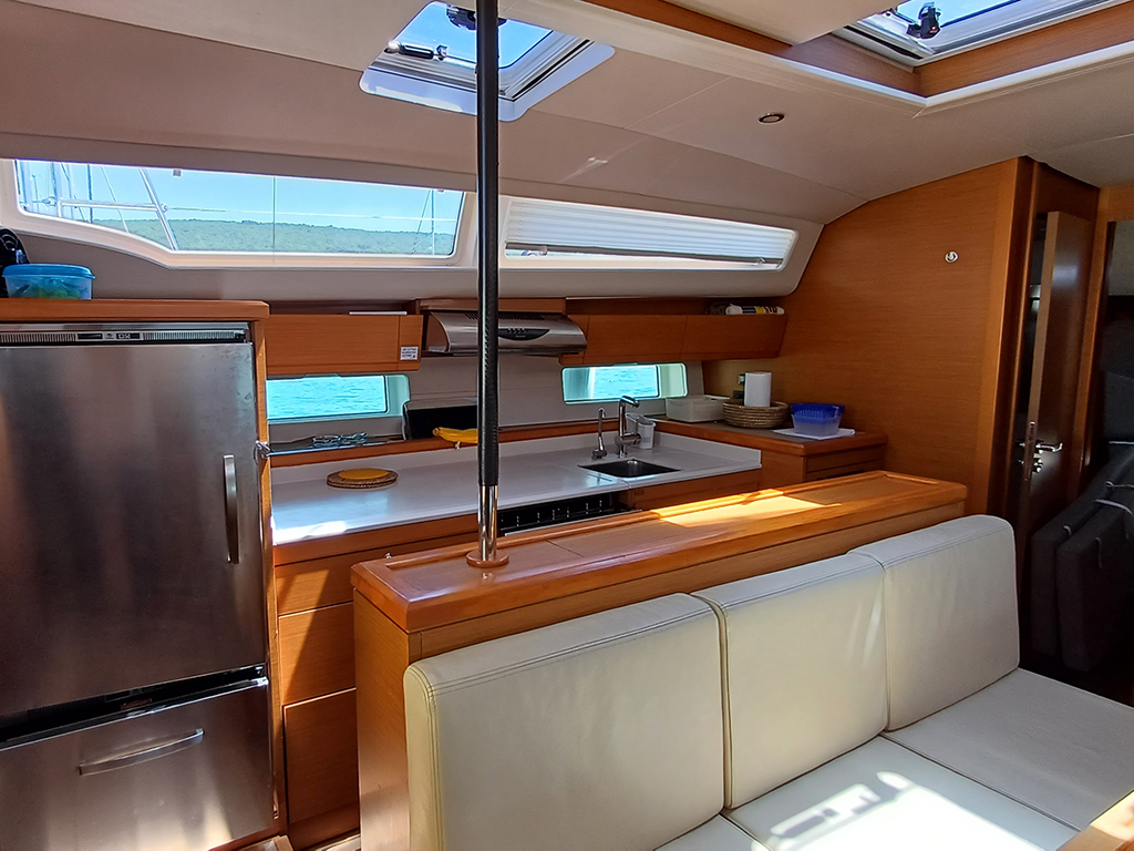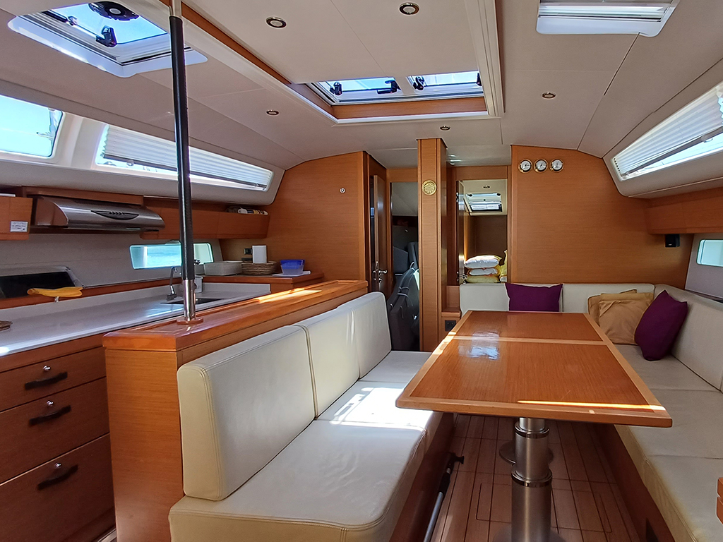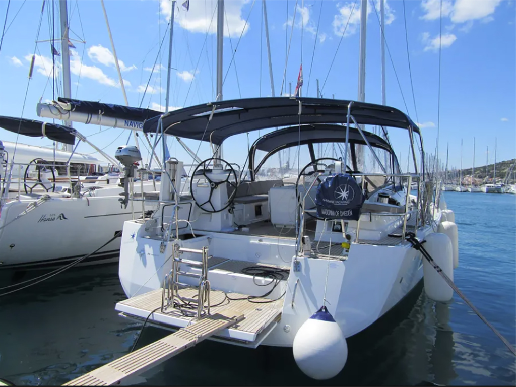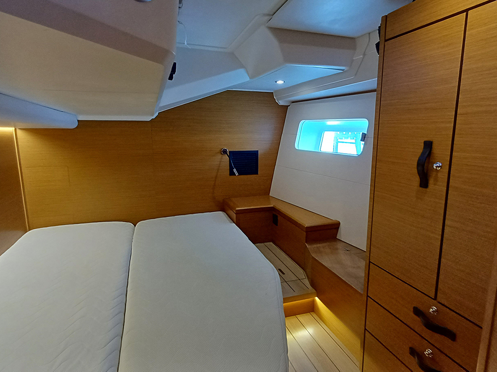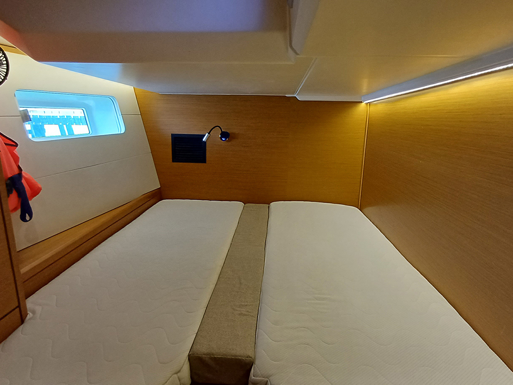 Autopilot, Bootsmannstuhl, Bordapotheke, Bordwerkzeug, Bugstrahlruder, elektr. Bilgepumpe, Feststoffschwimmwesten, Feueraxt, Feuerlöscher, Flaggen, Handbilgepumpe, Lifebelts, Navigationslichter, Nebelhorn, Notpinne, Notsignale, Radarreflektor, Rettungsinsel, Rettungskragen, Taschenlampe, UKW-Funk m. DSC, Zweitanker |