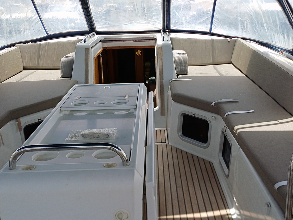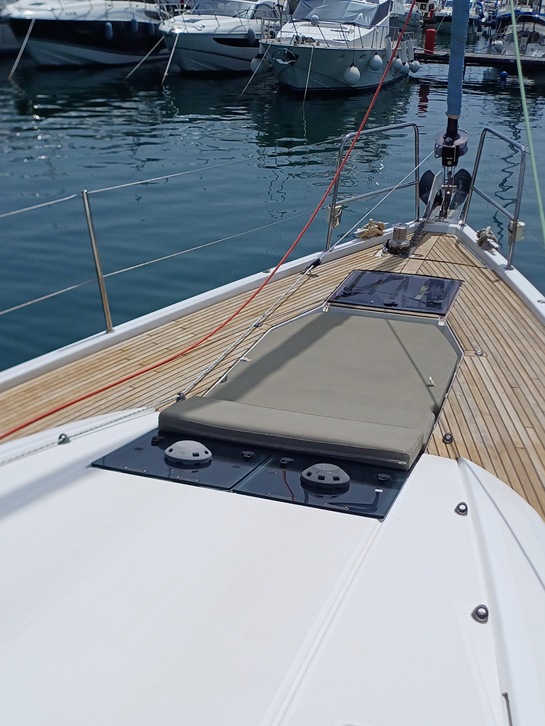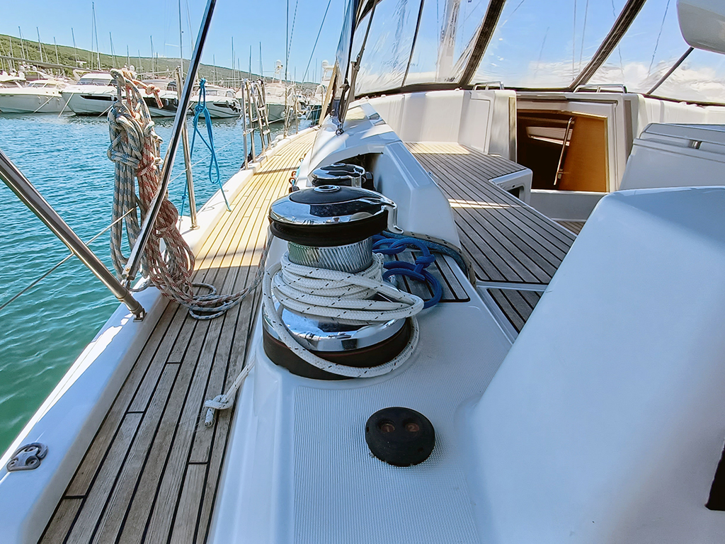 220 V-Landanschluss, Anker mit Kette, Badeleiter, Badeplattform, Biminitop, Bootshaken, Cockpitdusche, Cockpitlautsprecher, Cockpitpolster, Deckbürste, Delta-Anker, elektr. Ankerwinsch, elektr. Genuawinsch, elektr. Winsch, Fender, Festmacherleinen, Gangway, Kugelfender, Schnorchelausrüstung, Sprayhood, Teak im Cockpit, Teakdeck, Wantenschneider, Wasserschlauch, Windex, Winschen |