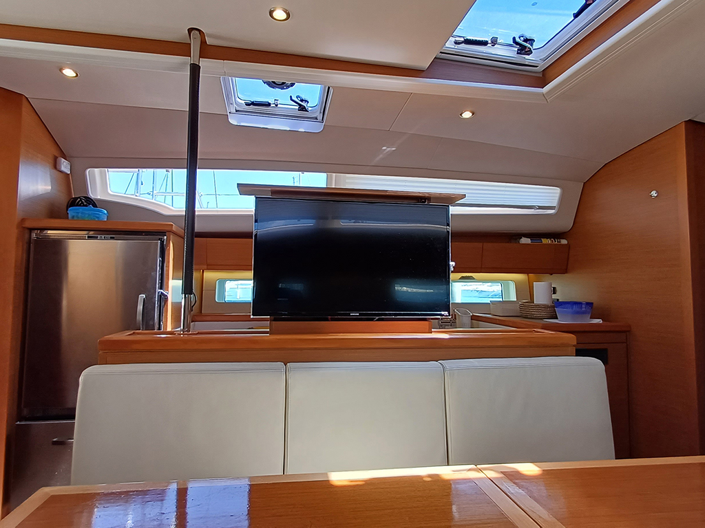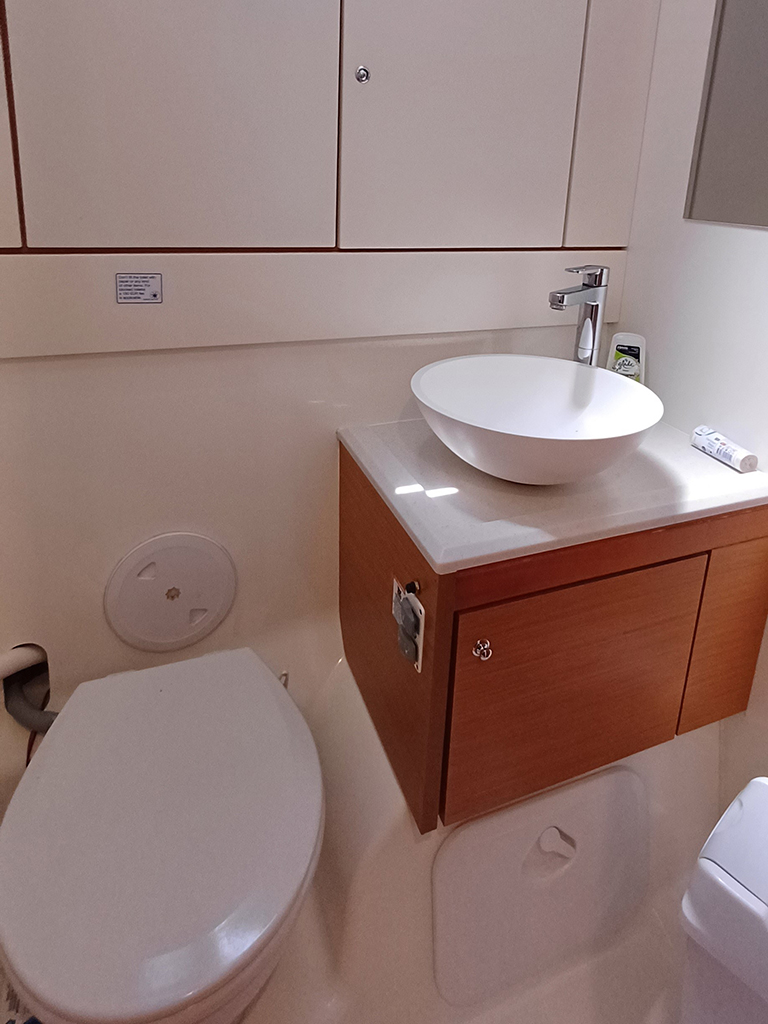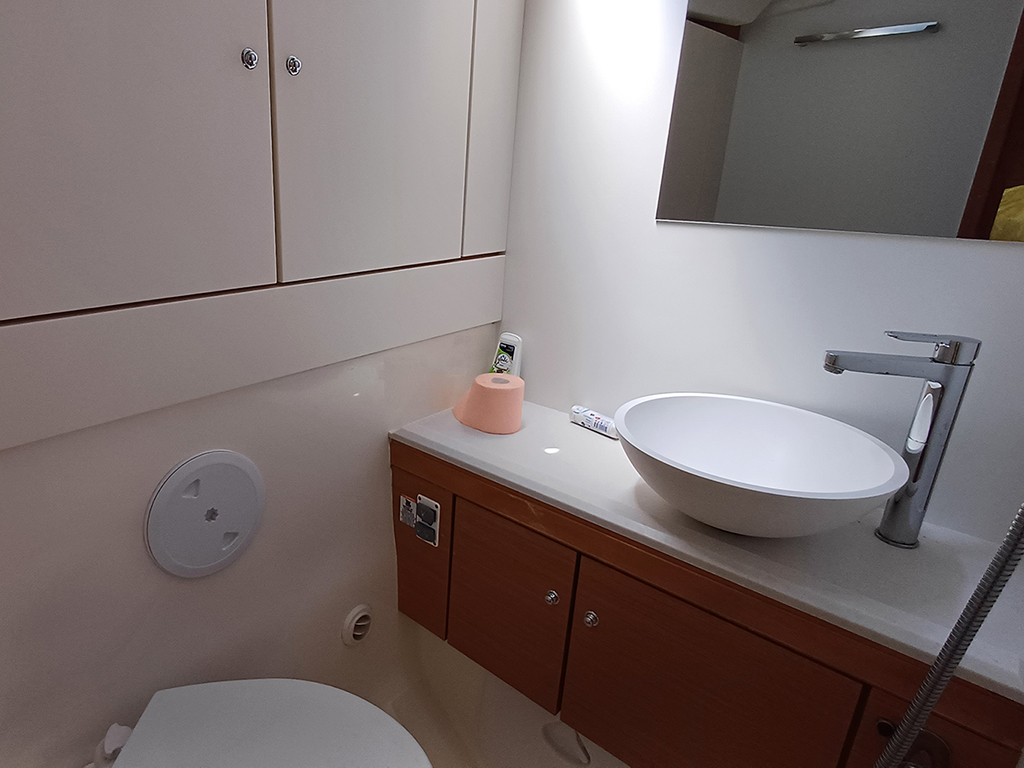 12V/220V-Steckdosen, 2. Kühlschrank, Backofen, Borduhr, Fäkalientank, Frischwasserpumpe, Gasherd, Gefrierschrank, Heizung, Hi-Fi System, Inverter 12V/220V, Kleiderbügel, Klobürste, Kühlschrank mit Gefrierfach, Ladegerät, Lautsprecher im Salon, LED-Innenleuchten, Mokkakanne, Pantryausstattung, Radio, Radio mit CD, USB, Bluetooth, Trichter, Ventilatoren in Kabinen, Wasserkocher, WC (elektr.) |