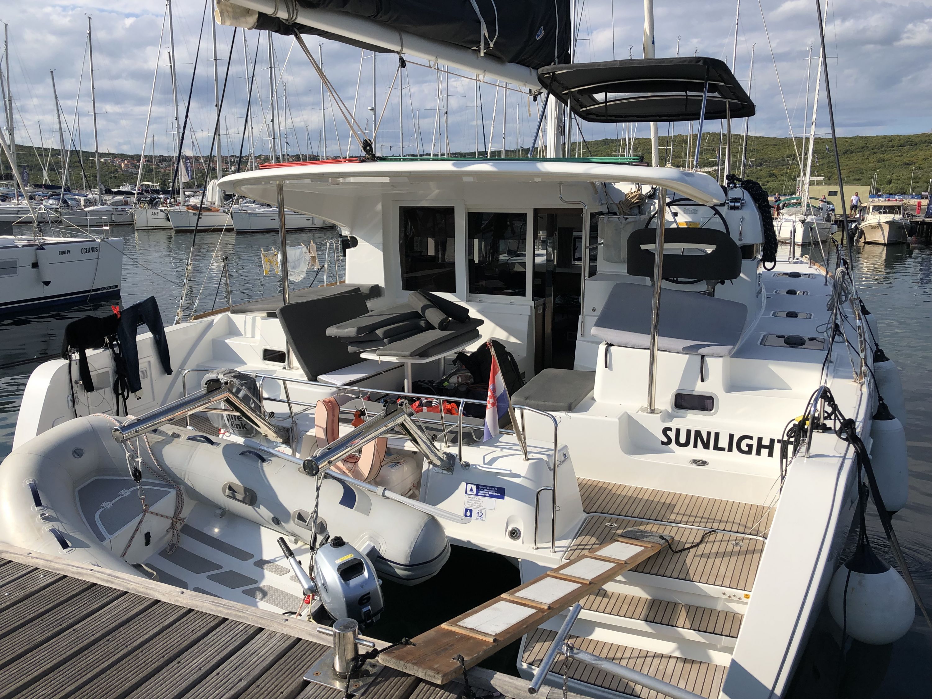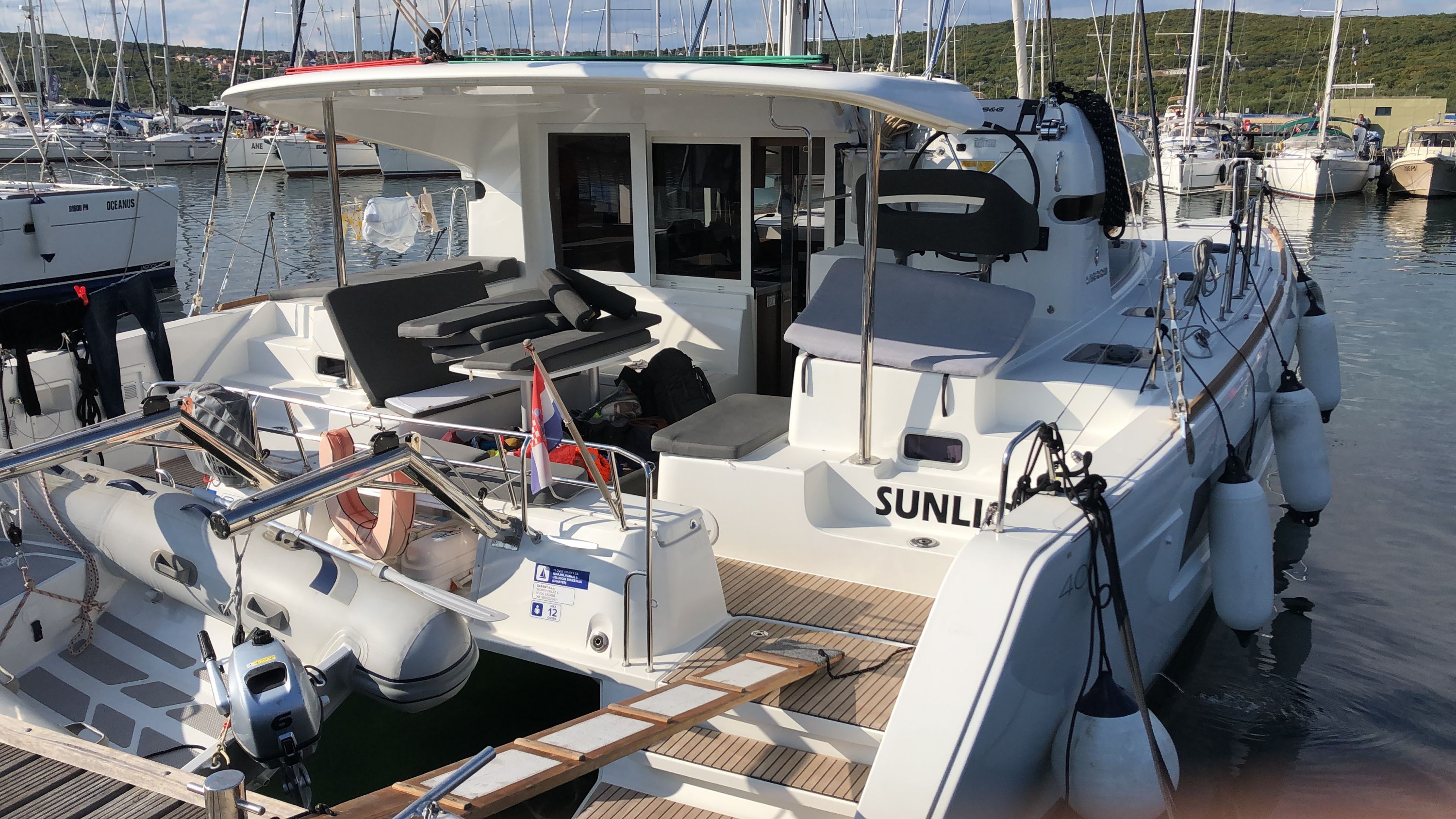 | Outside | Biminitop, Cockpitdusche, Cockpitkühlschrank, Cockpitlautsprecher, Cockpittisch, Festmacherleinen, Sonnendeck, Sprayhood, Wasserschlauch |