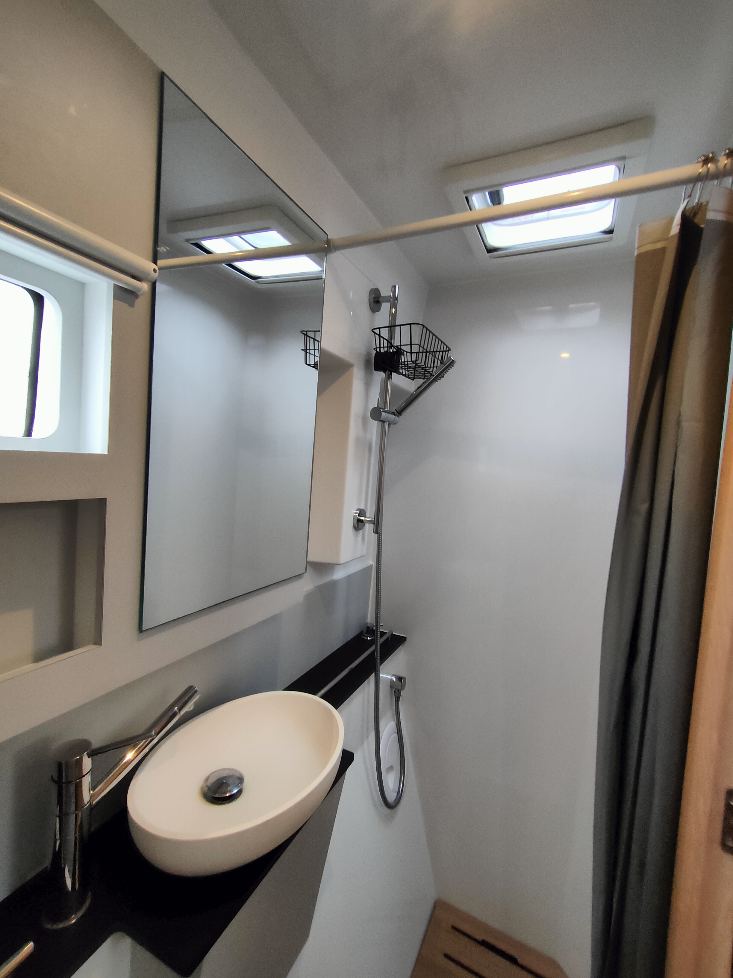 | Inside | Backofen, Fäkalientank, Gasherd, Geschirr, Kleiderbügel, Klobürste, Kühlschrank, Mokkakanne, Radio mit CD und MP3, Spülbecken, Warmwasser |