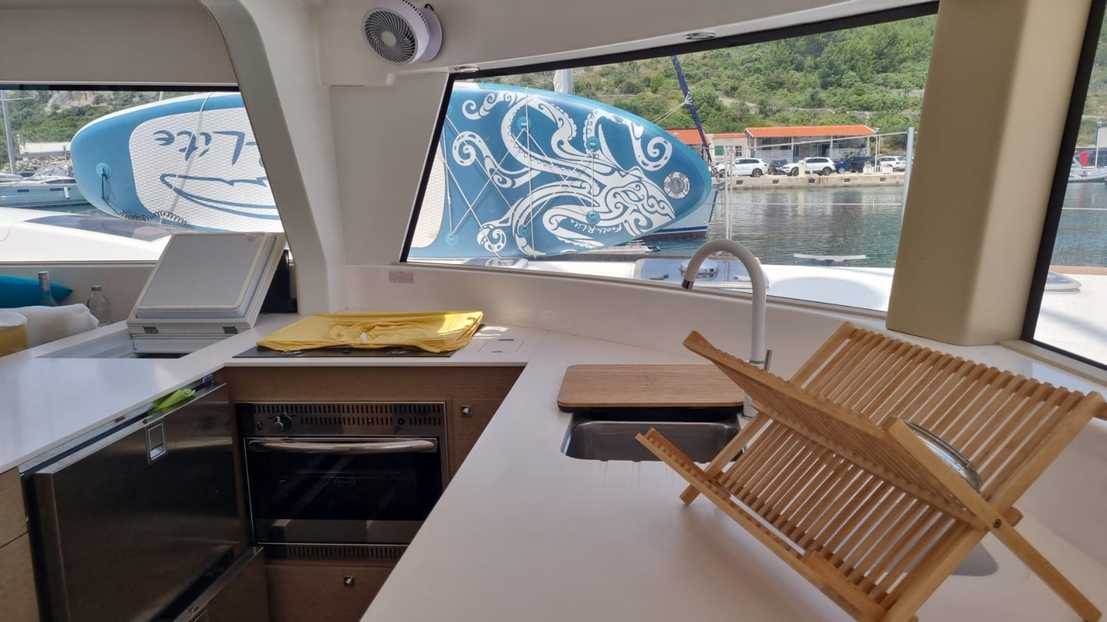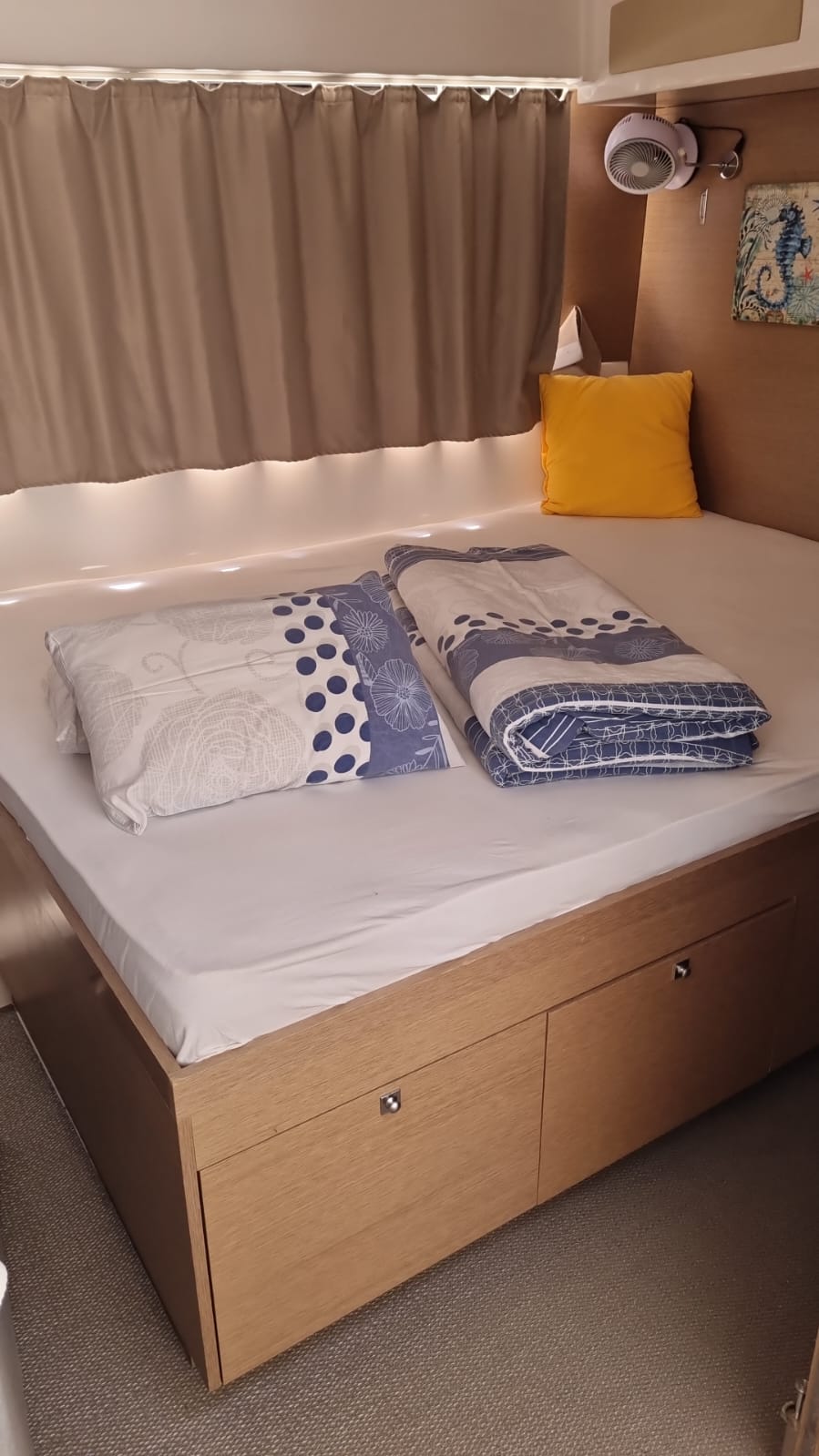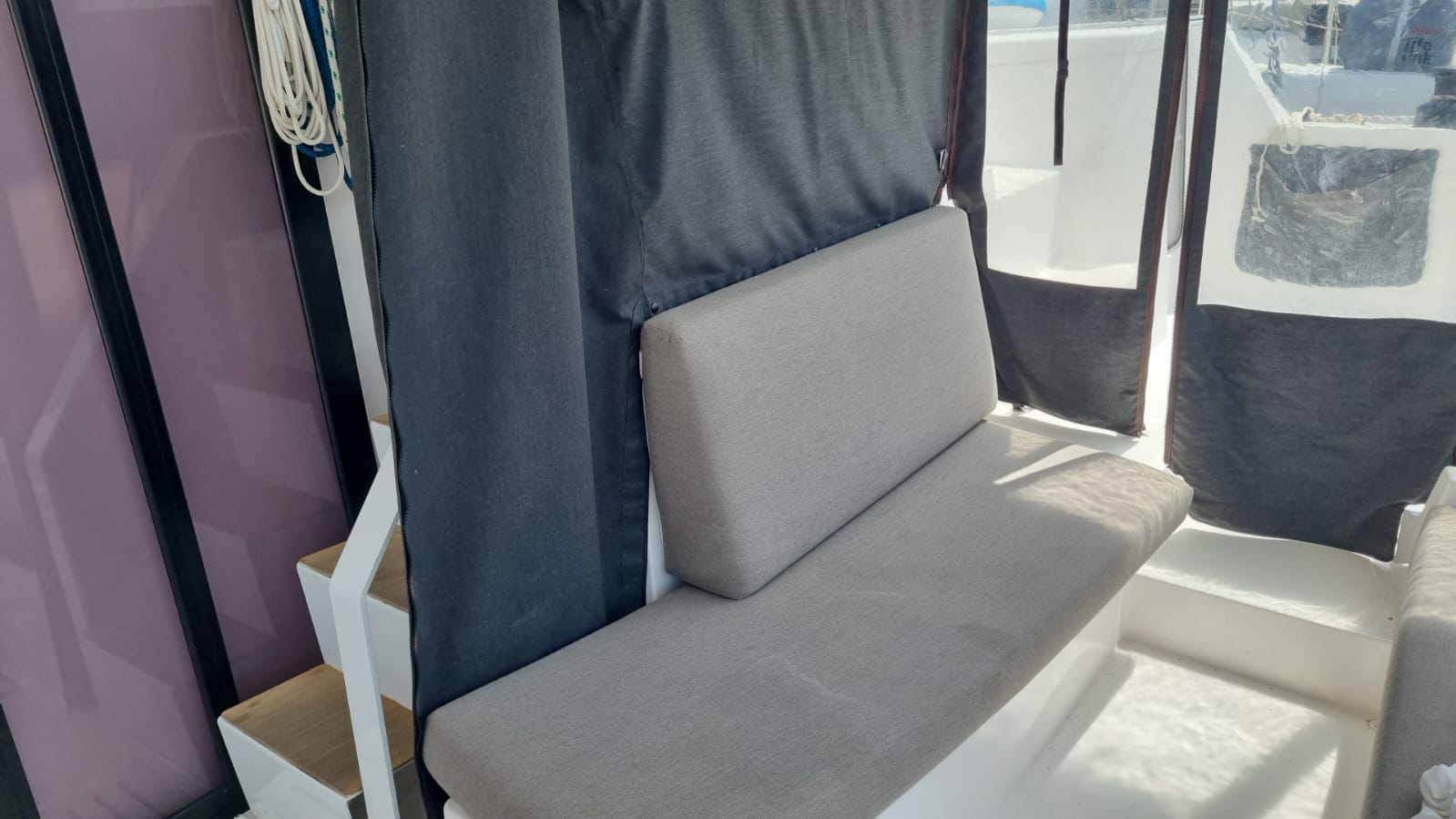 | Outside | Ankerkettenzähler, Badeplattform, Biminitop, Cockpitdusche, Cockpitlautsprecher, Cockpitleuchte, Cockpittisch, Davits, elektr. Ankerwinsch, Solaranlage, Sprayhood |