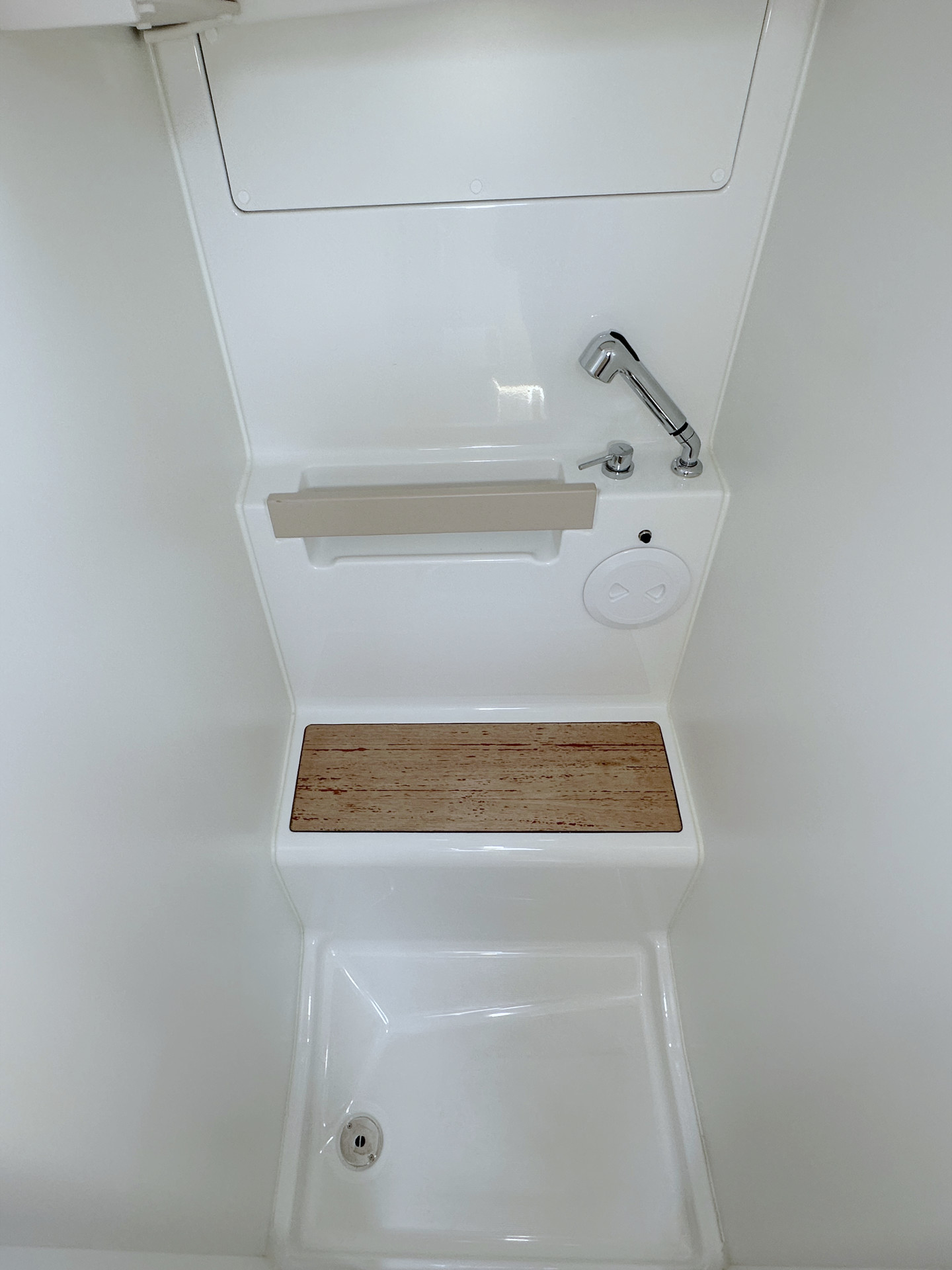 | Outside | 12 V-Anschluss, 220 V-Landanschluss, Anker mit Kette, Badeleiter, Badeplattform, Biminitop, Bootshaken, Cockpitdusche warm/kalt, Cockpitlautsprecher, Cockpitpolster, Cockpittisch, Deckbürste, elektr. Ankerwinsch, Fender, Fernsteuerung für elektr. Ankerwinsch, Festmacherleinen, Gangway, Lifeline System, Schnorchelausrüstung, Sprayhood, Teak auf Badeplattform, Teak im Cockpit, Wantenschneider, Windex |