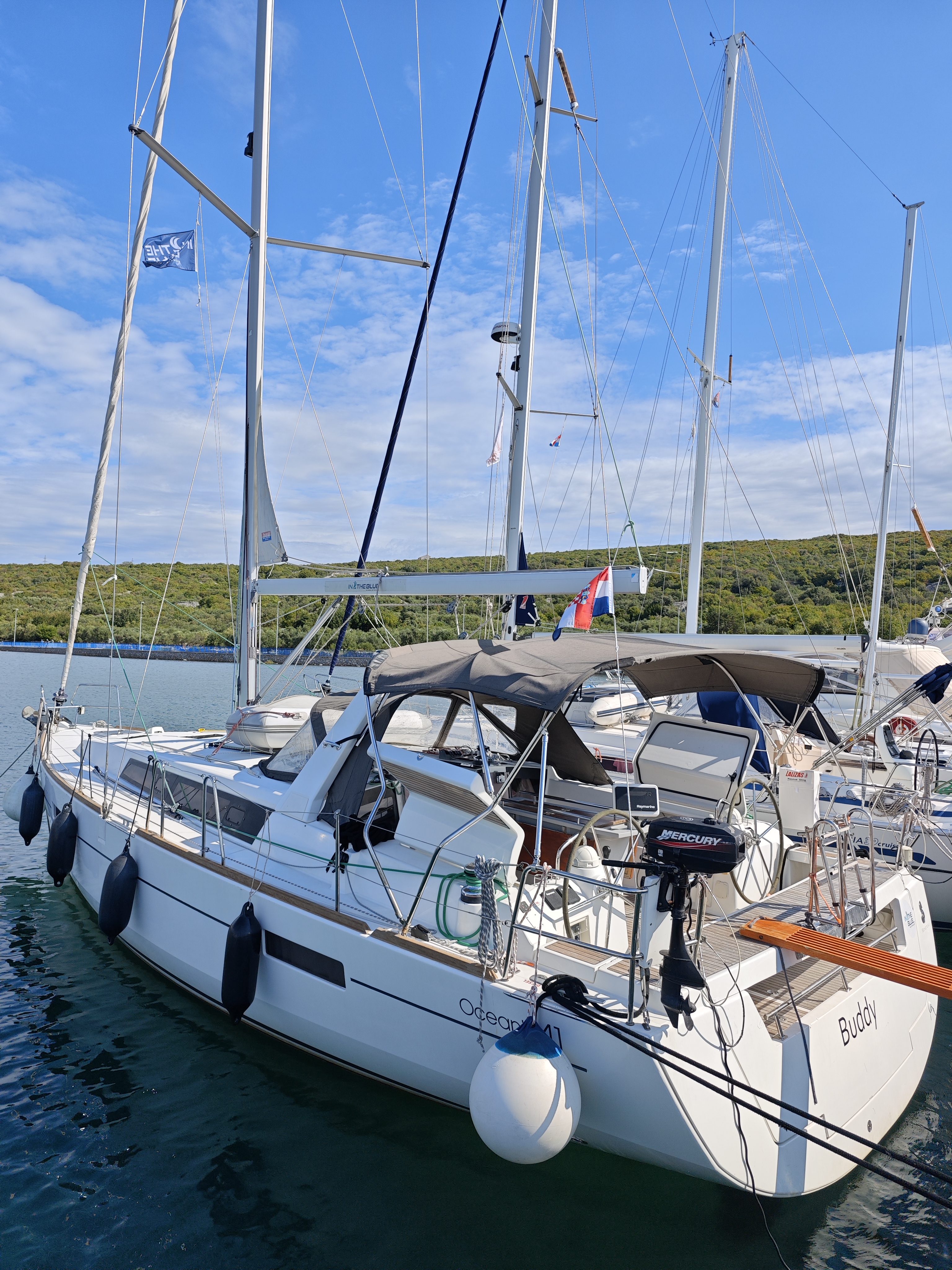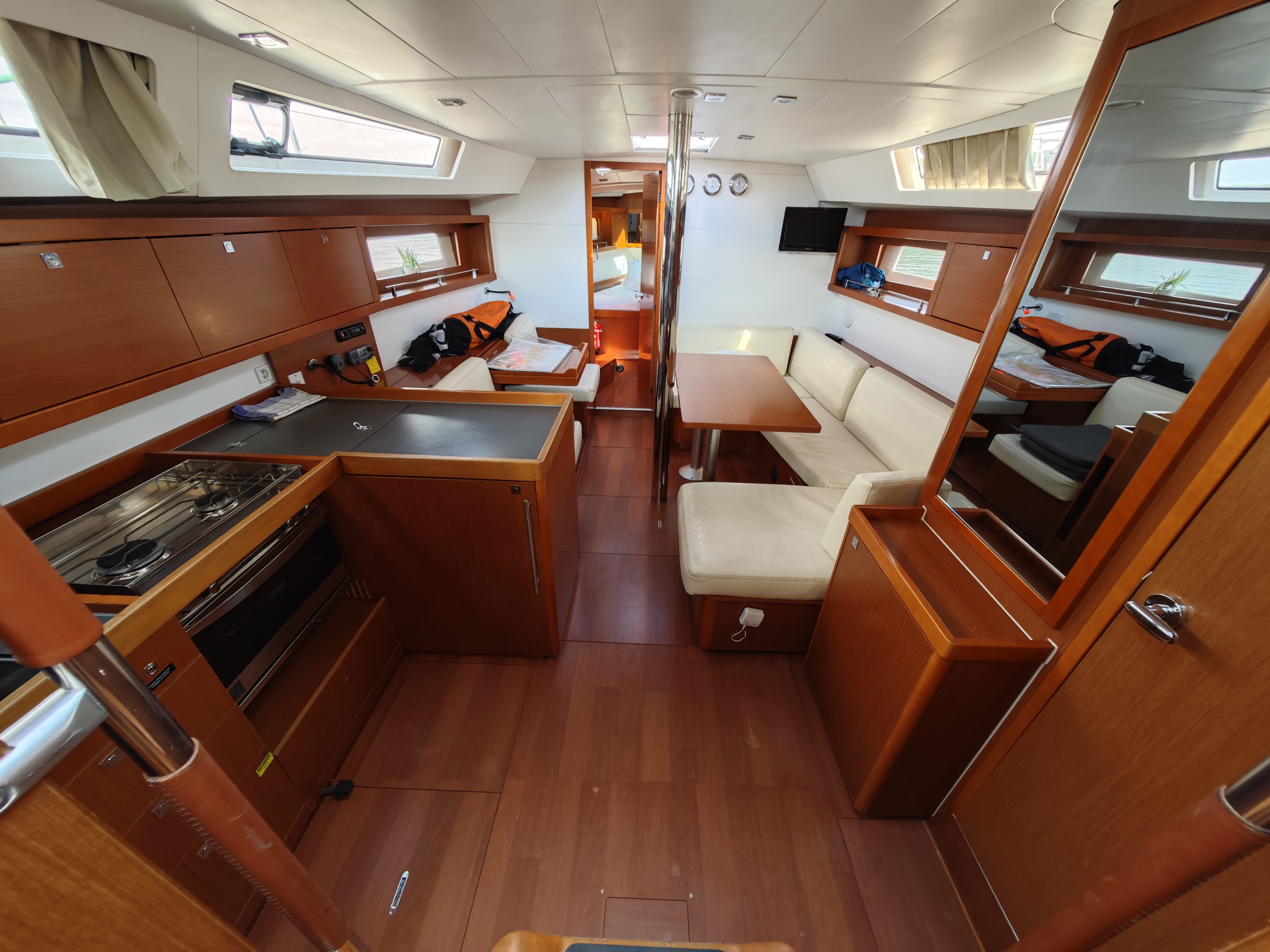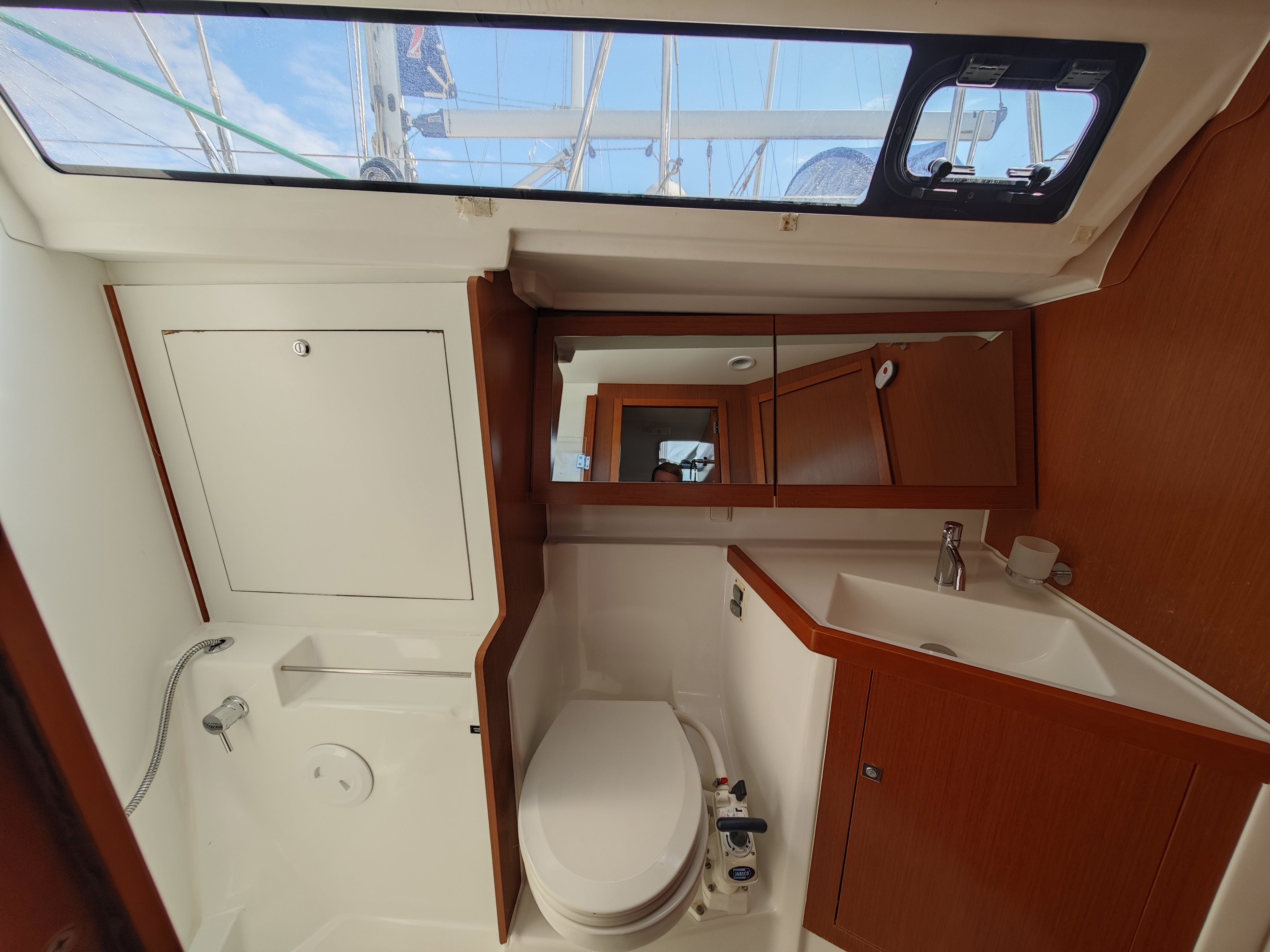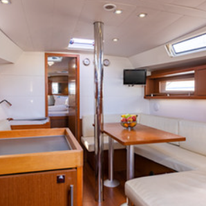 | Outside | Anker mit Kette, Badeplattform, Biminitop, Cockpitdusche, Cockpitlautsprecher, Cockpitleuchte, Cockpittisch, elektr. Ankerwinsch, Sprayhood, Teak im Cockpit |
