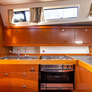 | Safety | Autopilot, Blitzboje, Bordapotheke, Bugstrahlruder, Feststoffschwimmwesten, Feuerlöscher, Lifebelts, Nebelhorn, Radarreflektor, Rettungsinsel, Rettungskragen, UKW-Funk |