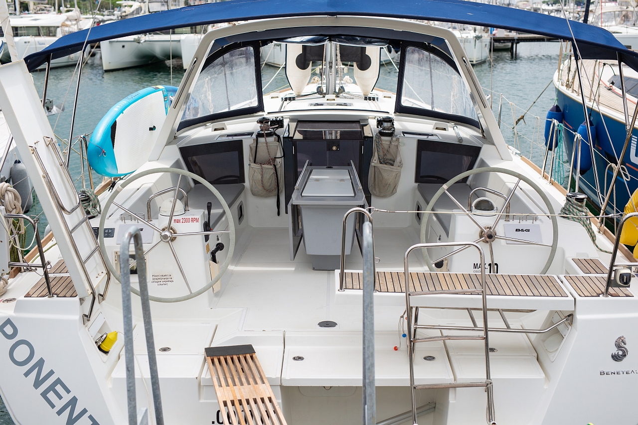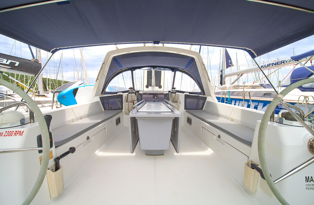 | Outside | Biminitop, Cockpitdusche, Cockpitlautsprecher, elektr. Ankerwinsch, Solaranlage, Sprayhood |