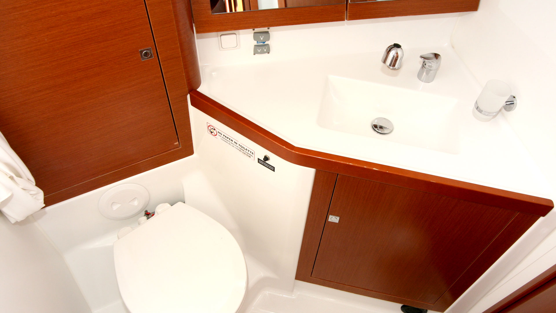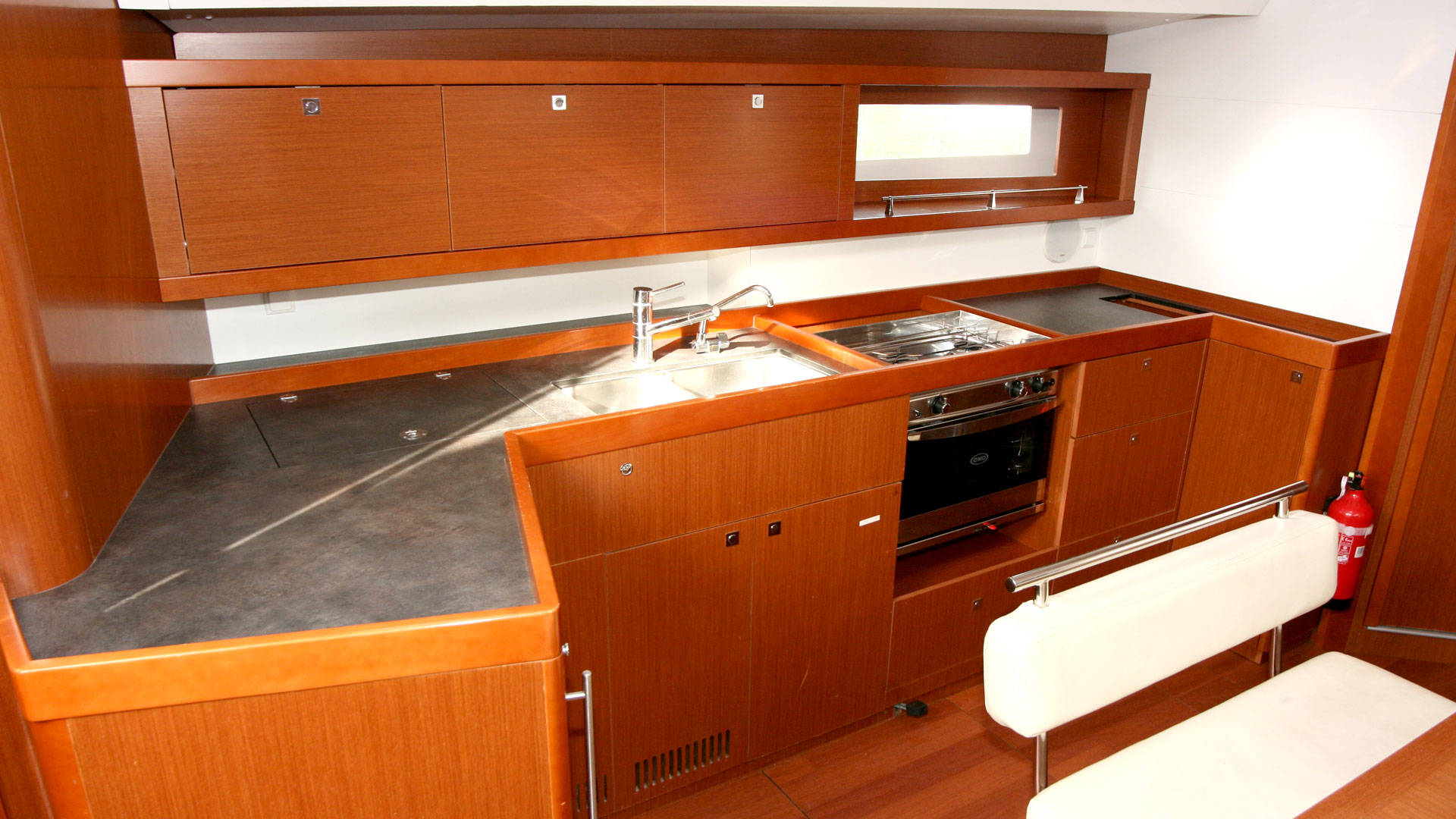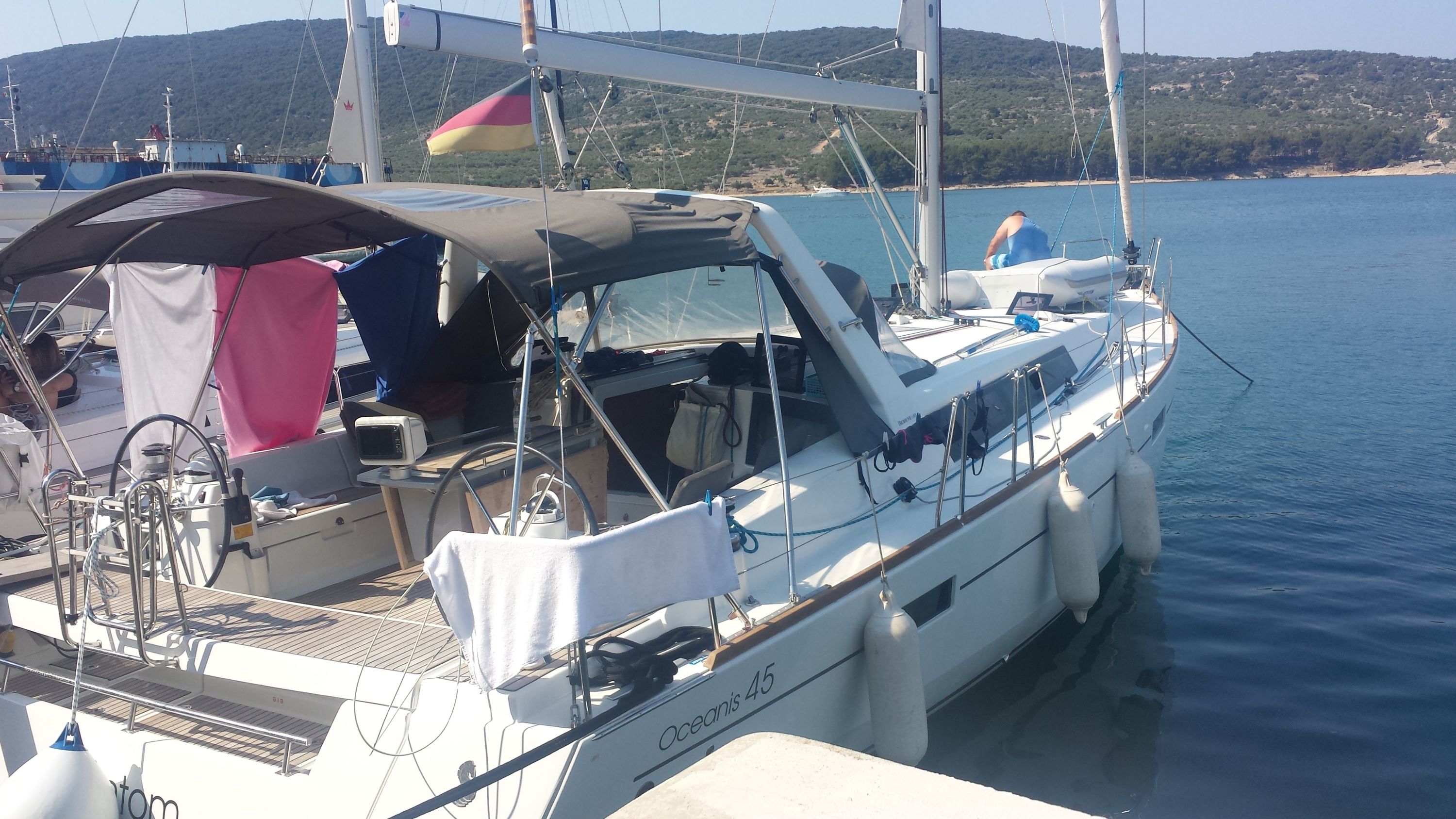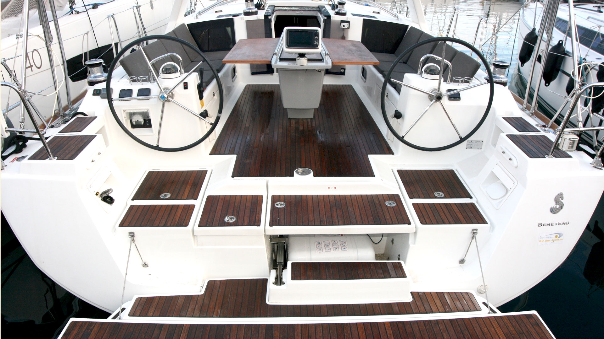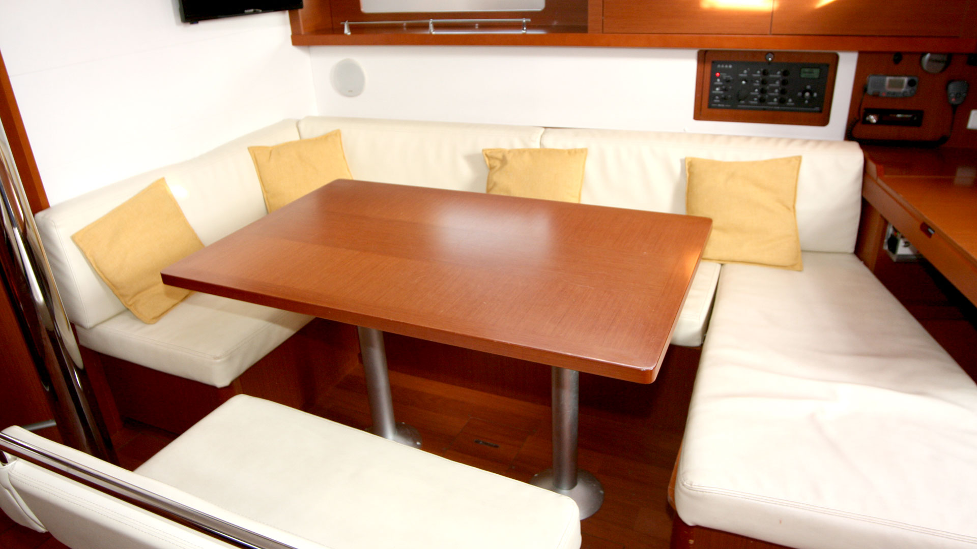 12 V-Anschluss, 220 V-Landanschluss, Anker mit Kette, Badeleiter, Badeplattform, Biminitop, Bootshaken, Cockpitdusche, Cockpitlautsprecher, Cockpitpolster, Cockpittisch, elektr. Ankerwinsch, elektr. Winsch, Fender, Festmacherleinen, Gangway, Kugelfender, Schnorchelausrüstung, Solaranlage, Sprayhood, Teak im Cockpit, Wasserschlauch, Winschen |