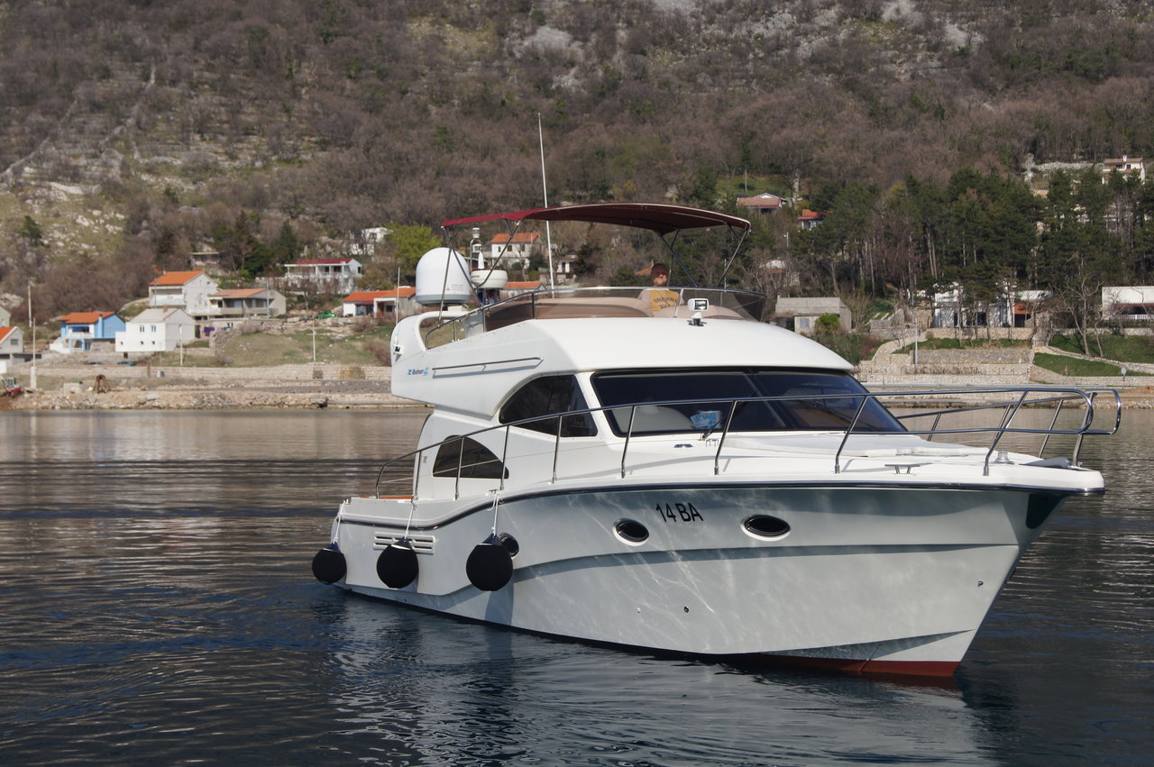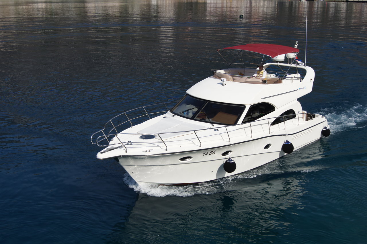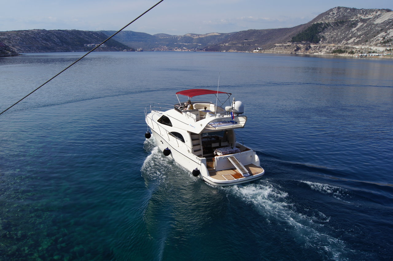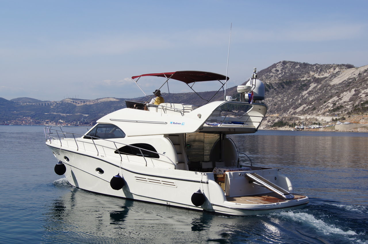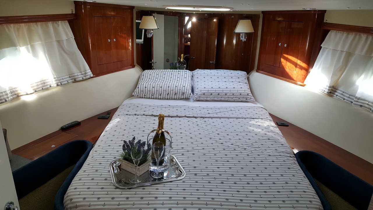 | Outside | 220 V-Landanschluss, Badeleiter, Badeplattform, Cockpitdusche, Cockpitlautsprecher, Cockpittisch, Deckpolster, elektr. Ankerwinsch, Flybridge mit Bimini und Kühlschrank, hydraul. Gangway, Sonnensegel, Teak im Cockpit, Teakdeck |