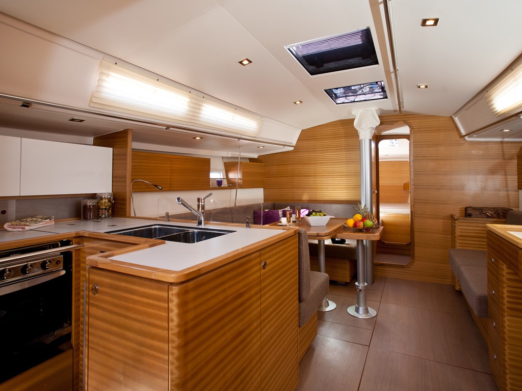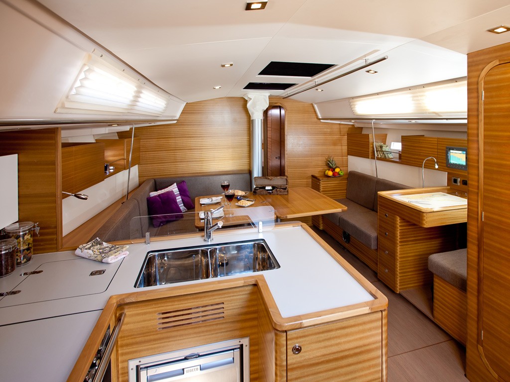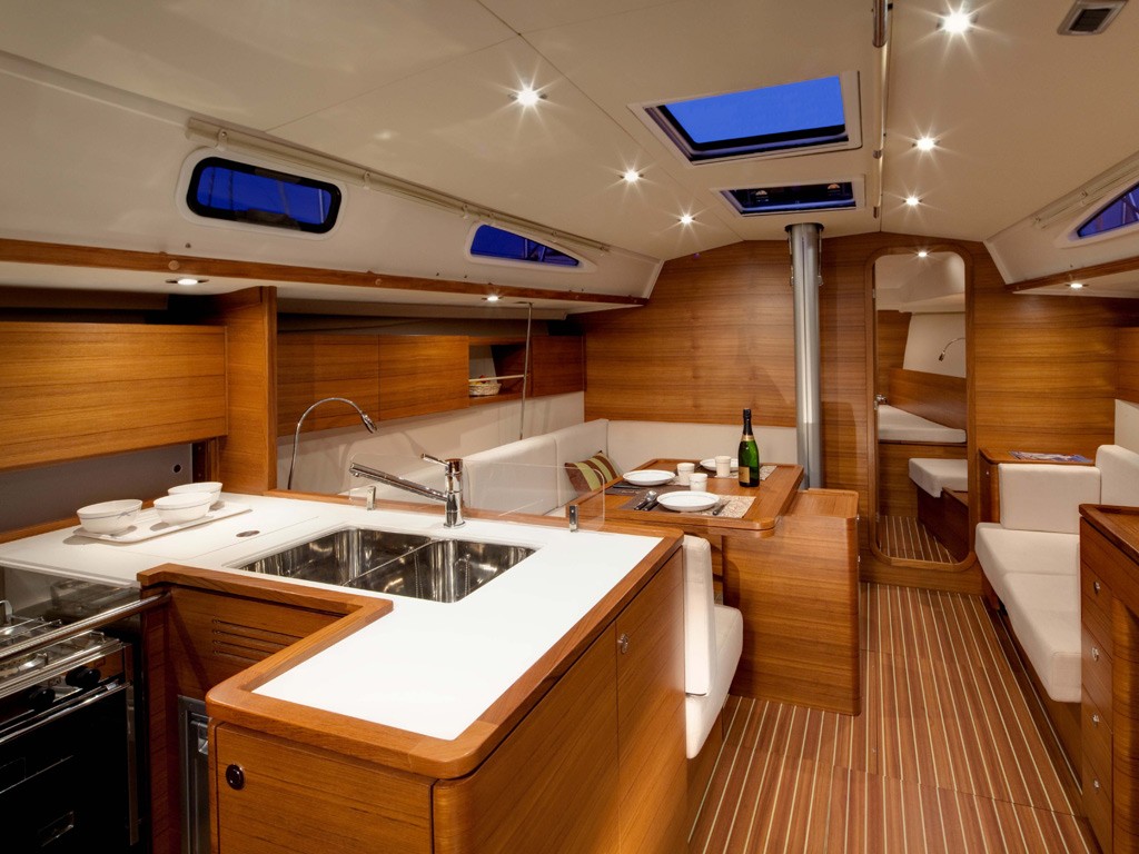 | Outside | Biminitop, Cockpitdusche, Cockpitlautsprecher, Cockpittisch, elektr. Ankerwinsch, Sprayhood, Teakdeck |
