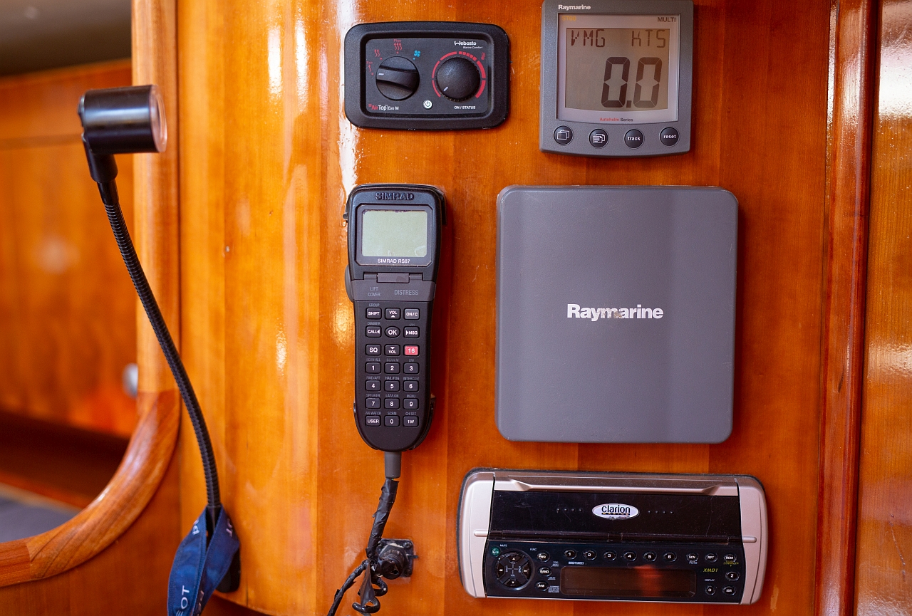 | Navigation | Echolot, GPS mit Kartenplotter im Cockpit, Kompass, Seekarten, Sumlog, Windmesser |