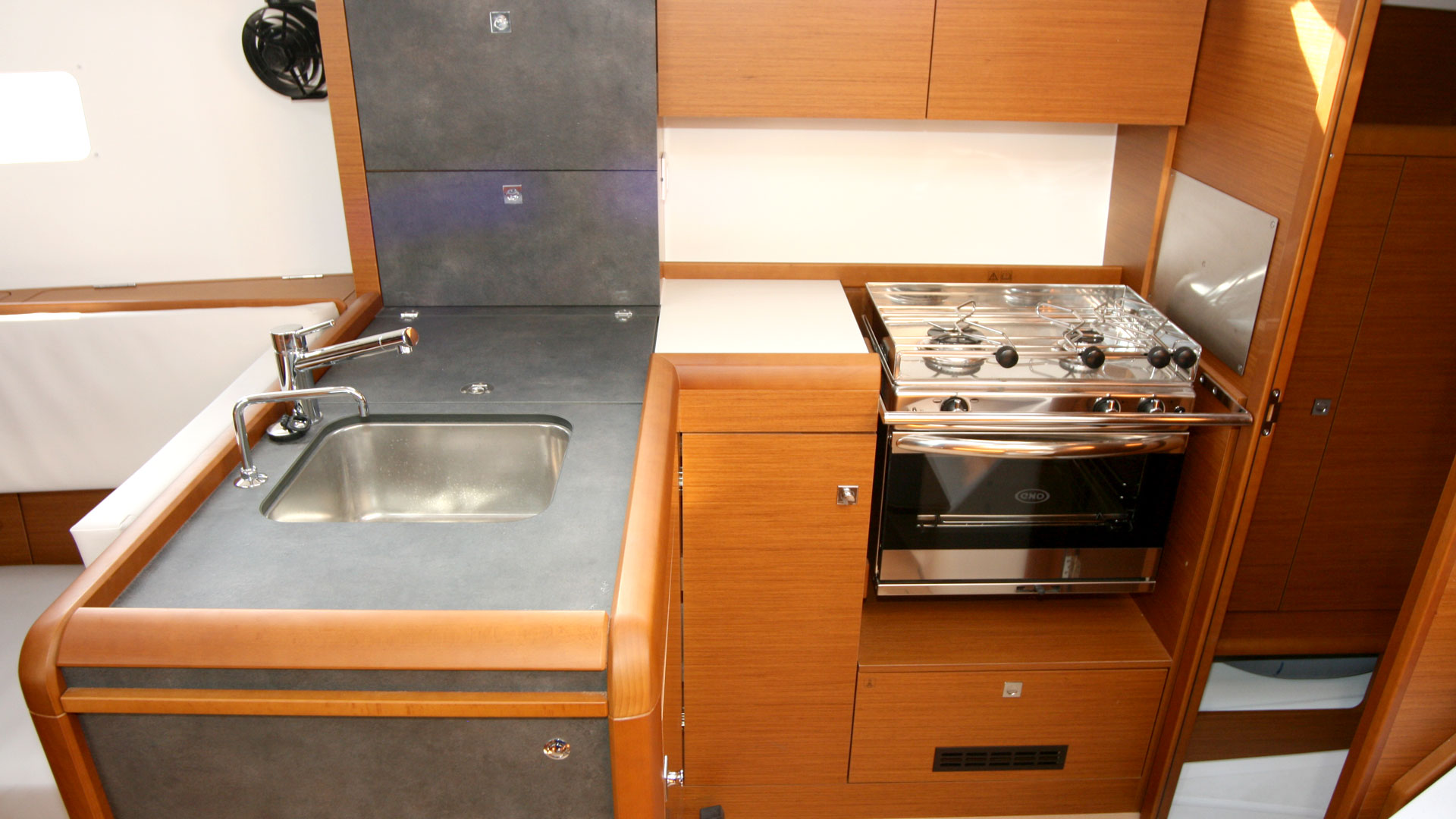 | Inside | Backofen, Borduhr, Fäkalientank, Gasherd, Heizung, Inverter 12V/220V, Kühlschrank, Ladegerät, Landstromkabel, Pantryausstattung, Radio mit CD, Safe für Wertsachen, TV mit DVBT2 und DVD, USB Steckdose, Ventilatoren in Kabinen, Warmwasser |