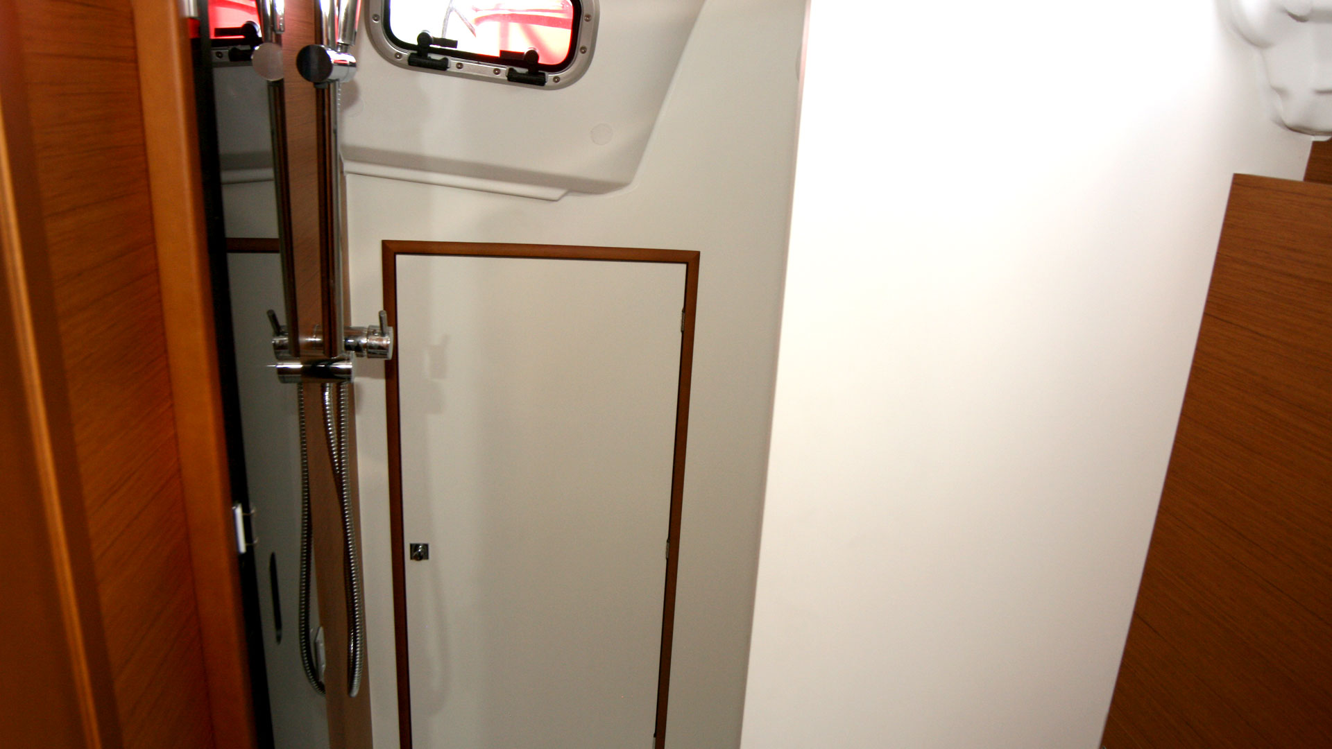 | Outside | 12 V-Anschluss, 220 V-Landanschluss, Anker mit Kette, Badeleiter, Badeplattform, Biminitop, Bootshaken, Cockpitdusche, Cockpitpolster, Cockpittisch, elektr. Ankerwinsch, Fender, Festmacherleinen, Gangway, Kugelfender, Solaranlage, Sprayhood, Teak auf Badeplattform, Teak im Cockpit, Wasserschlauch, Winschen |