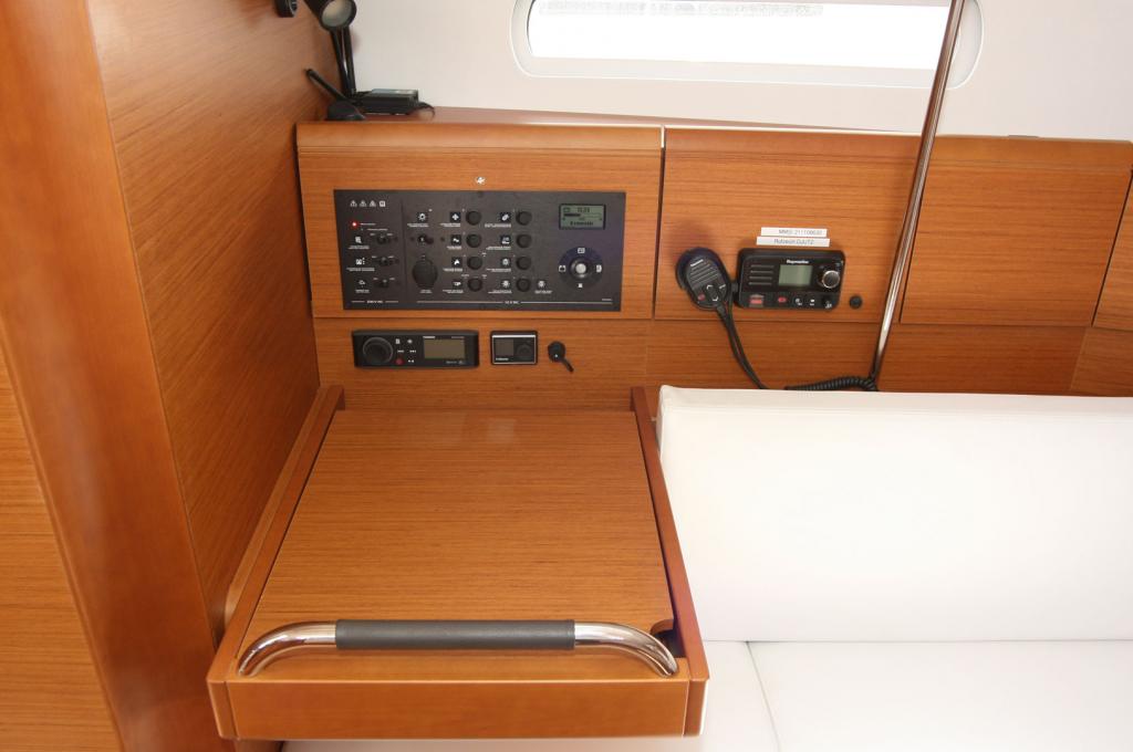 | Navigation | Barometer, Fernglas, GPS mit Kartenplotter im Cockpit, Hafenhandbücher, Handpeilkompass, Kompass, Navigationsbesteck, Seekarten, Tridata (Log, Echolot, Windm.), Windmesser |