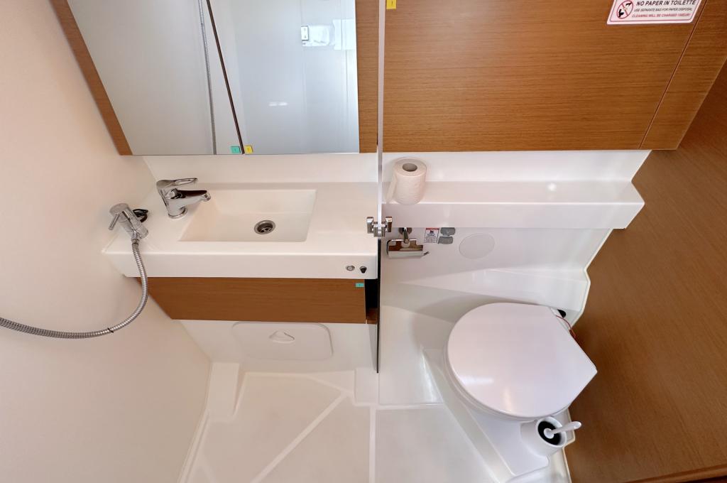 | Inside | 12V/220V-Steckdosen, Backofen, Eisbox, Gasherd, Heizung, Inverter 12V/220V, Landstromkabel, Lautsprecher im Salon, Pantryausstattung, Radio mit USB und Bluetooth, Safe für Wertsachen, TV mit DVBT, USB Steckdosen in den Kabinen, Warmwasser, WC (elektr.) |