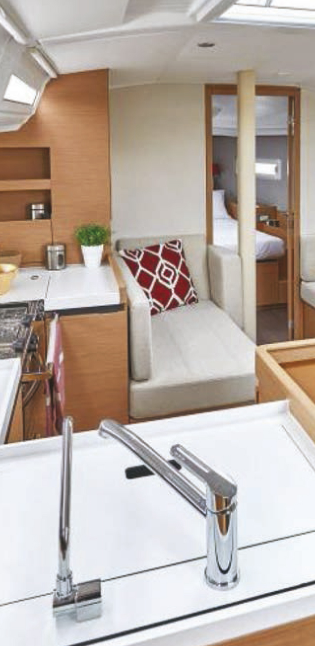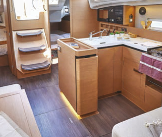 | Safety | Bordapotheke, Bordwerkzeug, Bugstrahlruder, Feststoffschwimmwesten, Handbilgepumpe, Navigationslichter, Nebelhorn, Notpinne, Notsignale, Rettungskragen, Taschenlampe, UKW-Funk |