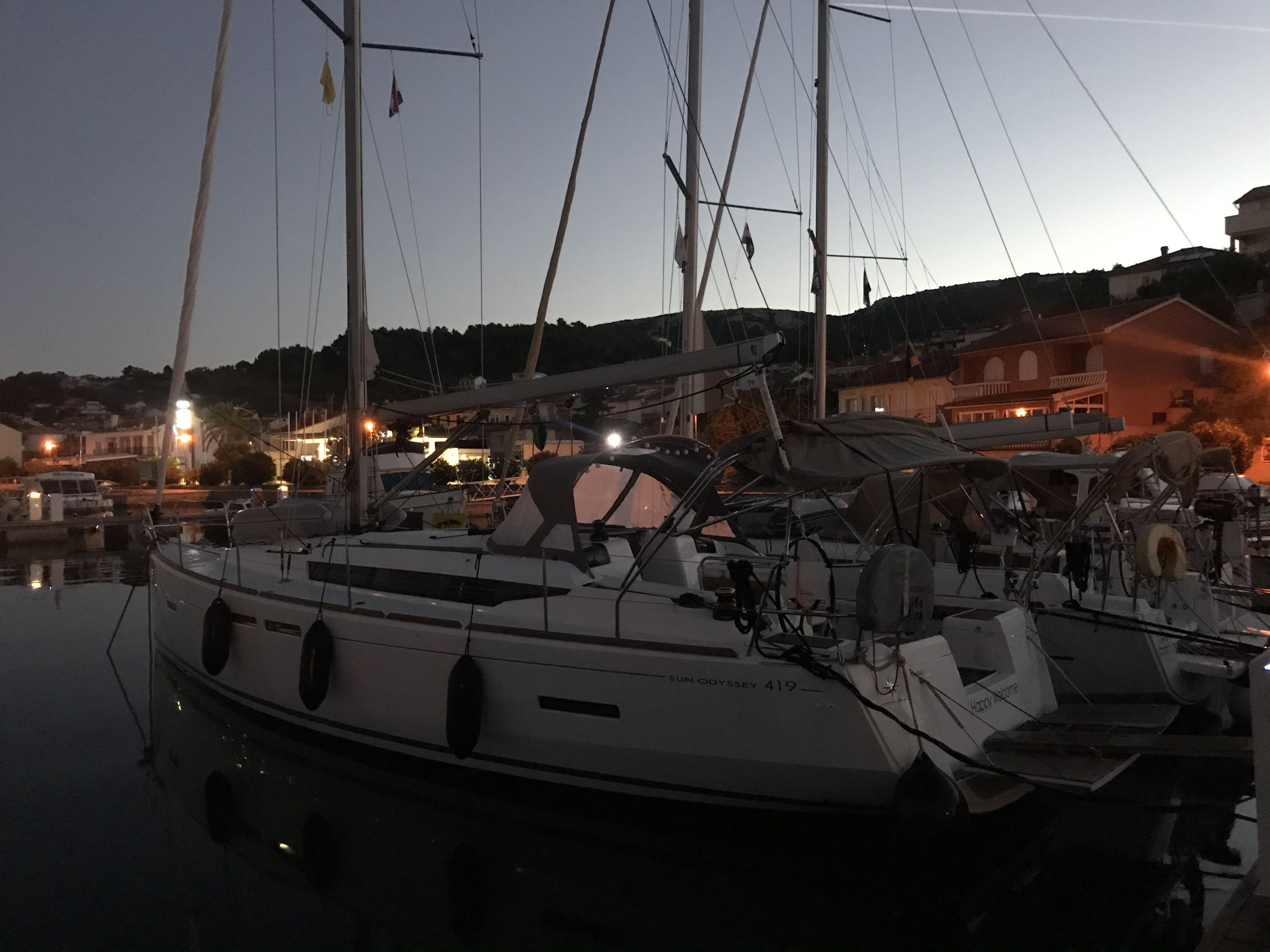 Bei der Rückkehr nach Punat herrschten noch sehr starke Böen der Bora. Da wir uns aber beim Vercharterer vorher telefonisch angekündigt hatten, war das Personal beim Anlegen vor Ort und hat sehr professoinelle Hilfe geleistet.