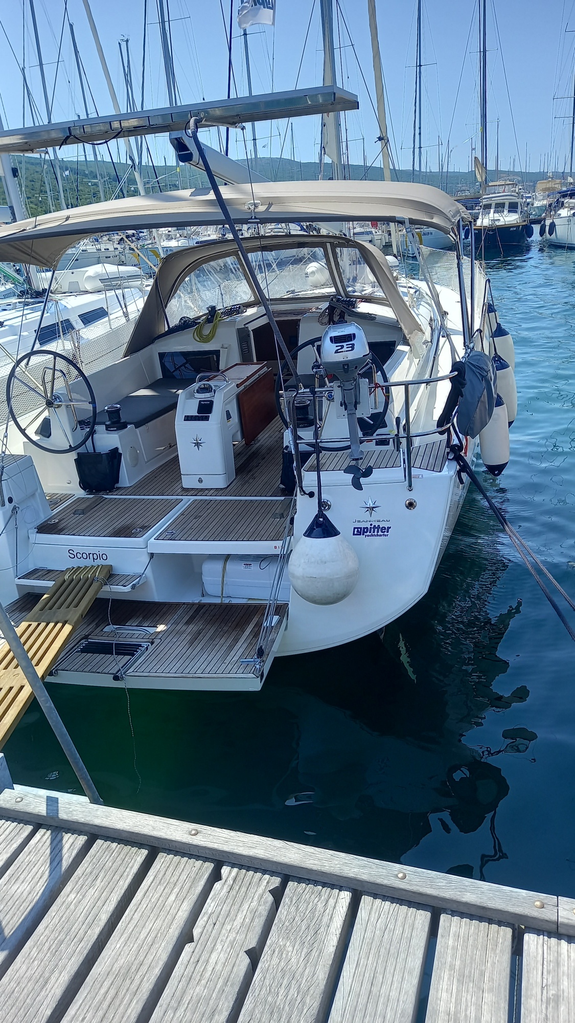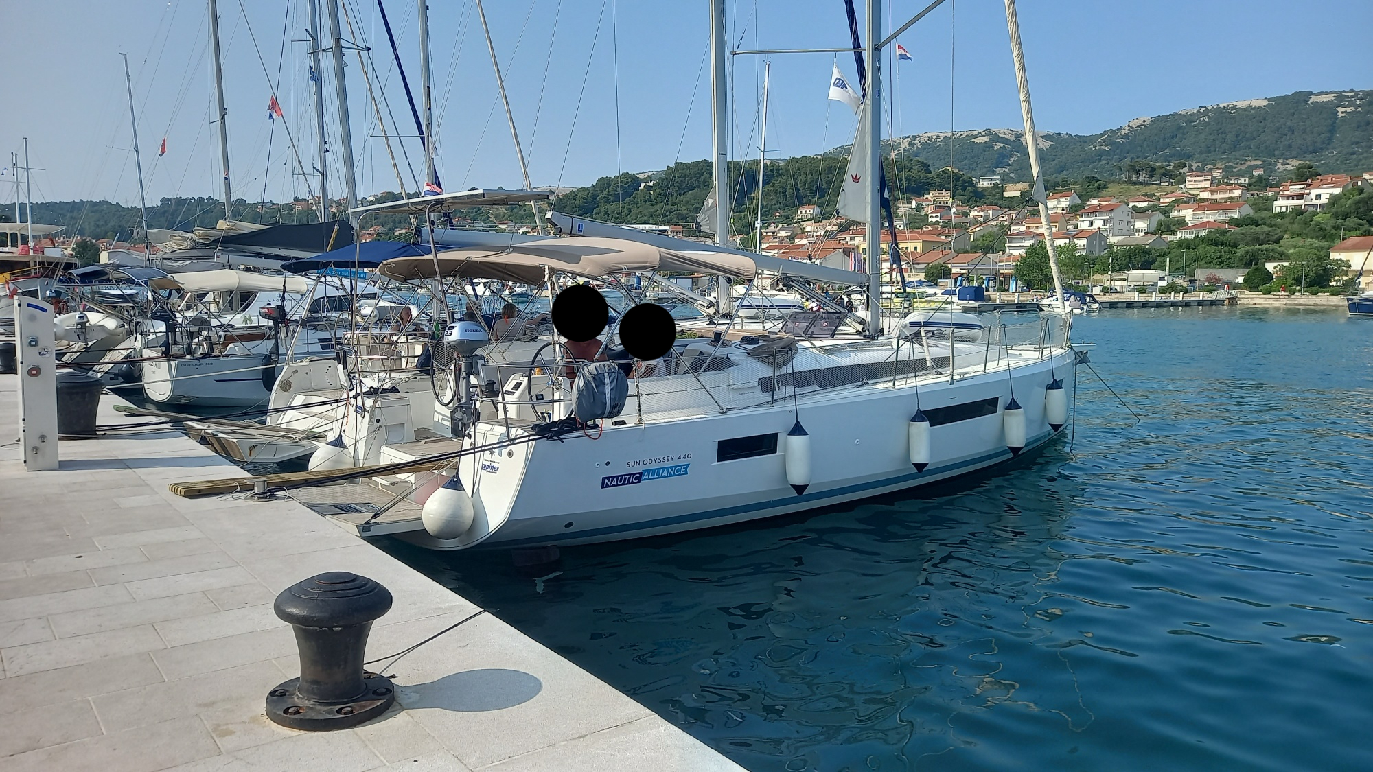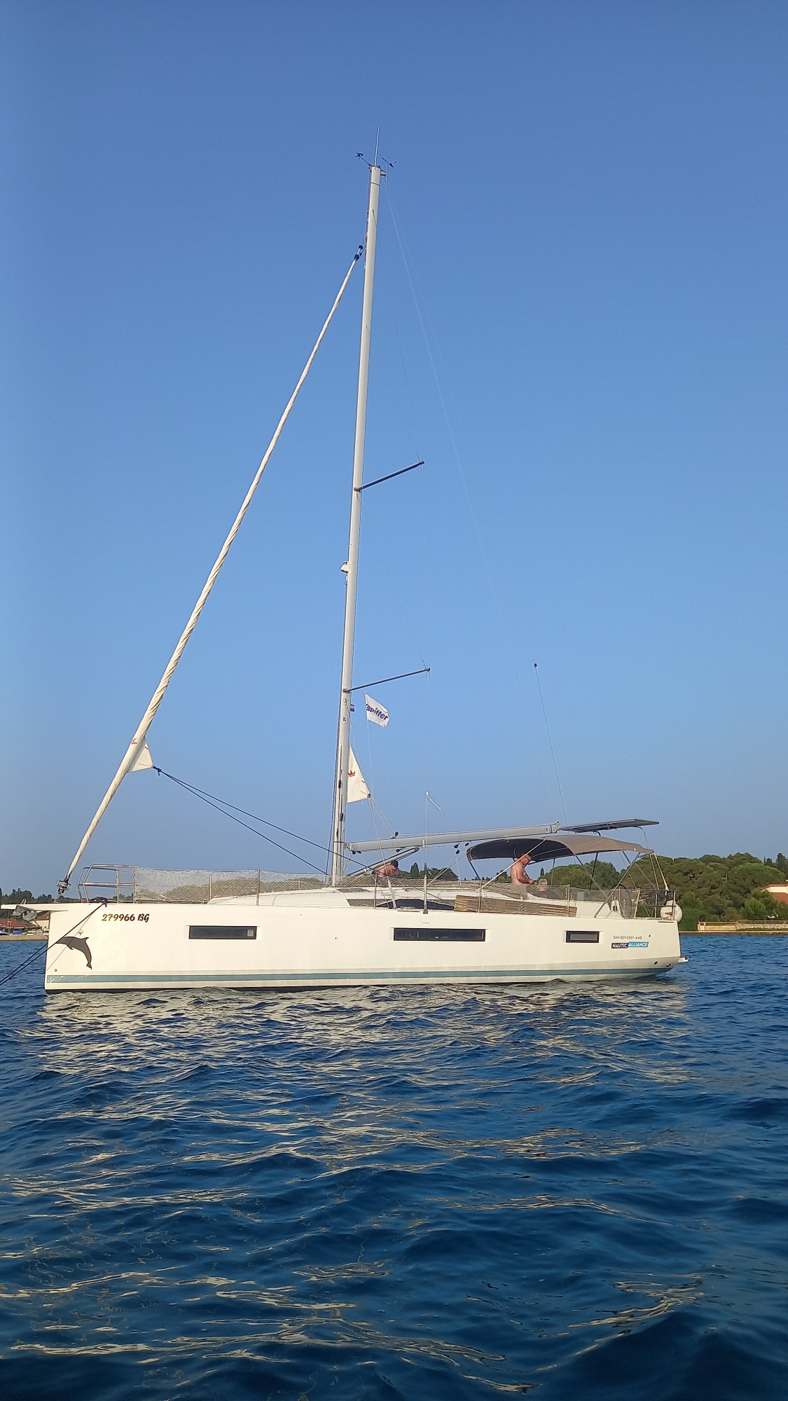 Mir ist nicht ganz klar, wer jetzt genau die Charterfirma war, Delphin oder Pitter, auf jeden Fall war es das am besten gewartete und unterhaltene Schiff, was wir jemals hatten, vielleicht abgesehen von der polnischen Firma vor zwei Jahren. Die Einweisung folgte einem klaren Schema, was auf eine intensive Schulung schließen lässt und und insbesondere für unerfahrene Skipper von Vorteil sein dürfte. Alle Fragen von meiner Seite wurden kompetent beantwortet, das Boot war pünktlich fertig, allerdings sind mittlerweile 175 € für einen ECI schon happig. Die Segeleigenschaften waren soweit in Ordnung, viel mehr als 9 Knoten darf man bei einer 44iger nicht erwarten. Was uns auffiel, waren die Details: Man kann vom Steuerstand um das Cockpit herum nach vorne gehen ohne zu klettern, die Stehhöhe unter dem Bimini kam uns SEHR entgegen, Stauflächen waren reichlich vorhanden, allerdings mussten wir uns die Küchenschränke etwas gewöhnen, man stapelt von oben. Die Kühlkapazitäten waren sehr gut, ebenfalls das Batteriemanagement dank der fest verbauten Solarpaneele, wir mussten nie Landstrom ziehen, obwohl wir fast nur unter Segeln gefahren sind. Die Rückgabe war ebenfalls sehr professionell, der von uns benannte Fehler wurde sofort behoben und nicht wie üblich aufs Zettelchen im Blöckchen geschrieben. Und wunschgemäß erhielten wir zum Schluss unsere Route als ausgedruckten Track - Super!