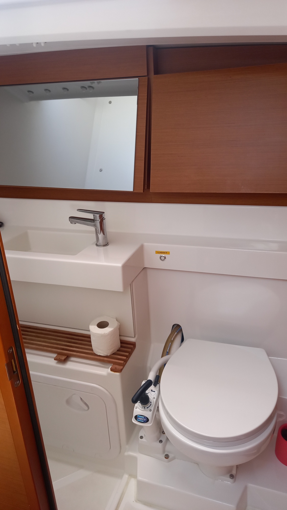 | Outside | 220 V-Landanschluss, Anker mit Kette, Ankerwinsch, Biminitop, Bootshaken, Cockpitdusche, Cockpitlautsprecher, Cockpitpolster, Cockpittisch, Dieselkanister , elektr. Ankerwinsch, Fender, Festmacherleinen, Gangway, Kugelfender, Kunststoff-Eimer (Pütz), Solaranlage, Sprayhood, Teak im Cockpit, Wantenschneider, Wasserkanister , Wasserschlauch |