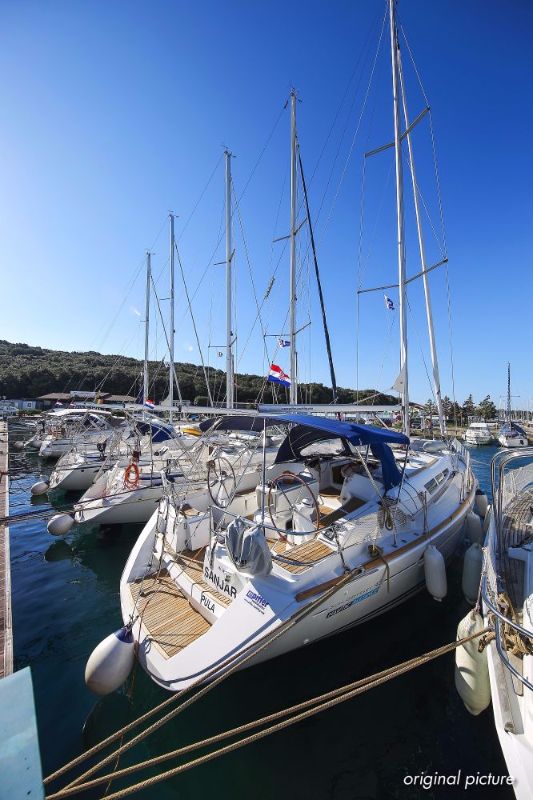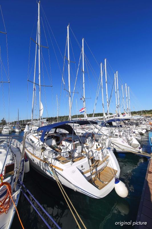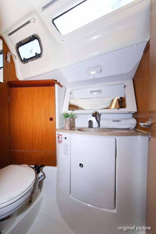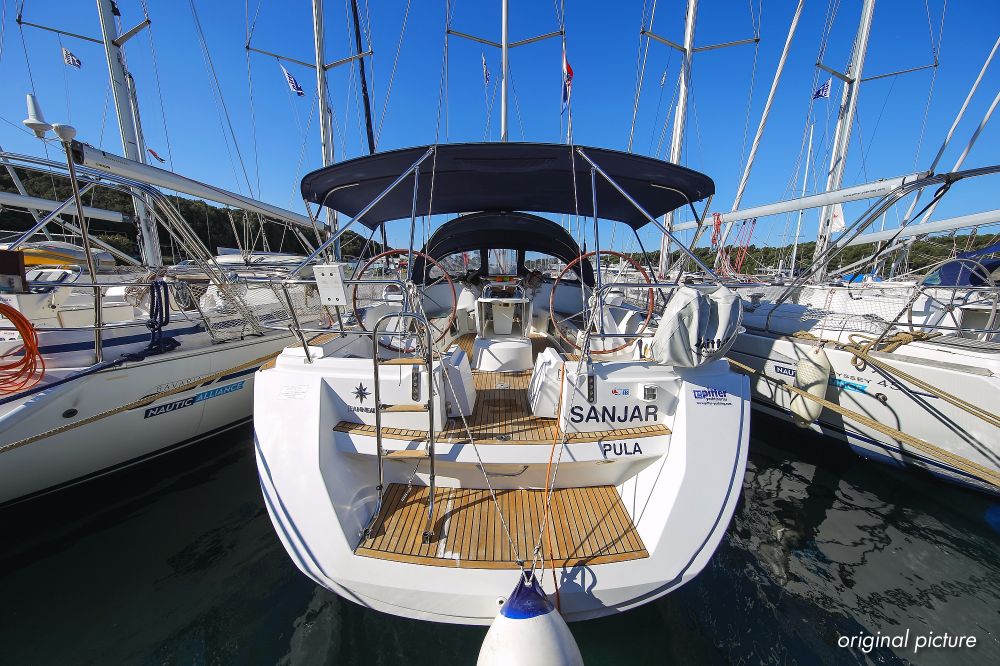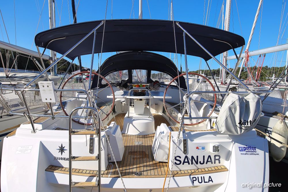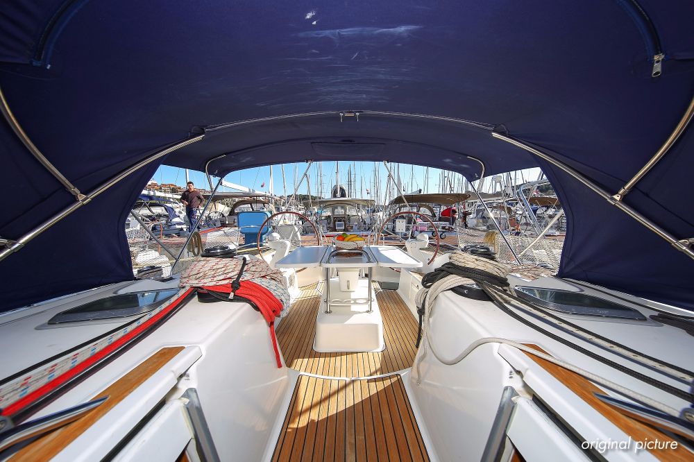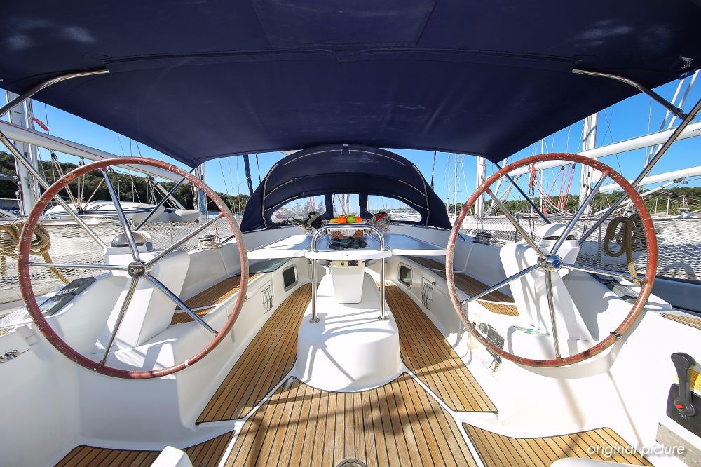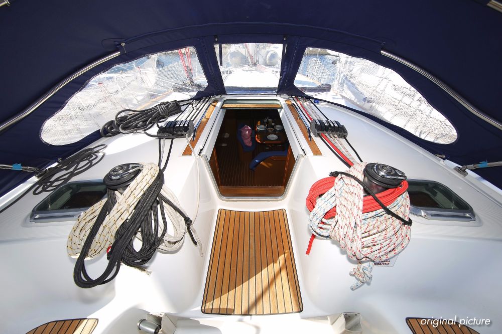 | Outside | 220 V-Landanschluss, Anker mit Kette, Ankerwinsch, Biminitop, Bootshaken, Cockpitdusche, Cockpitlautsprecher, Cockpitpolster, Cockpittisch, Dieselkanister , elektr. Ankerwinsch, Fender, Festmacherleinen, Gangway, Kugelfender, Kunststoff-Eimer (Pütz), Sprayhood, Teak im Cockpit, Wantenschneider, Wasserkanister , Wasserschlauch, Windex |