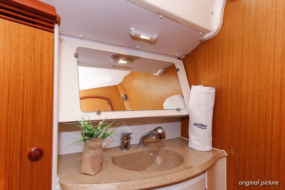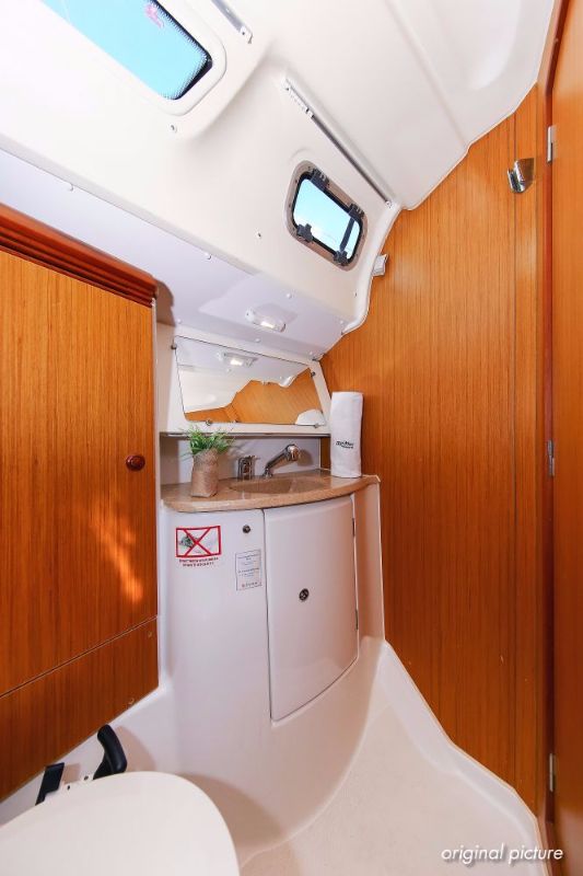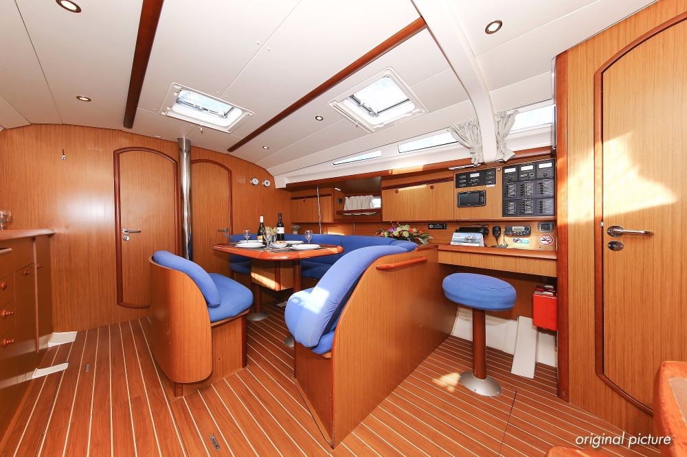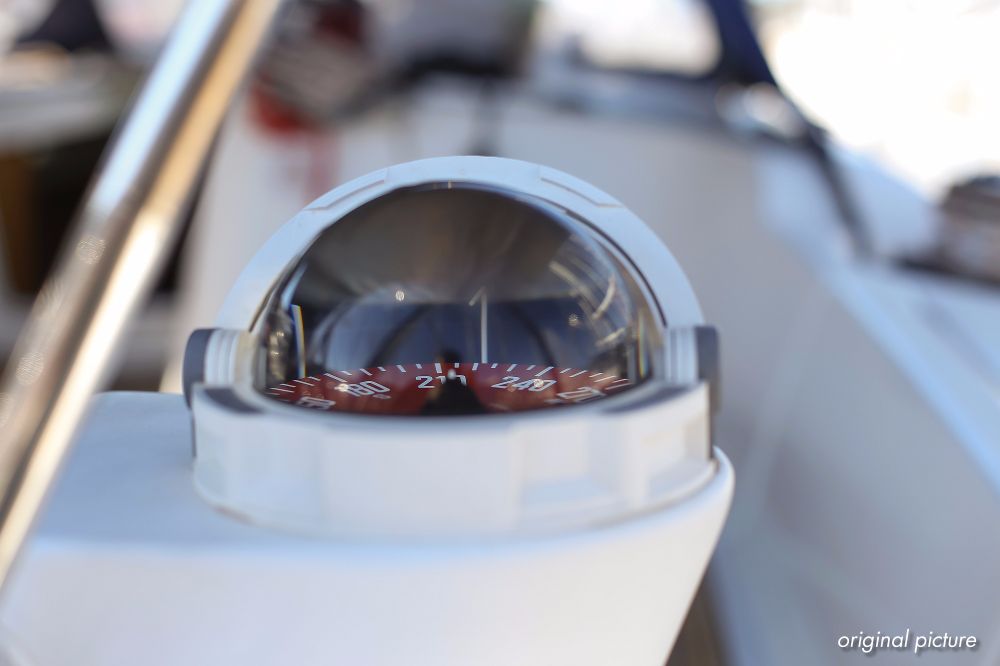 | Navigation | Barometer, Fernglas mit Peilkompass, GPS mit Kartenplotter im Salon, Hafenhandbücher, Handpeilkompass, Navigationsbesteck, Seekarten, Tridata (Log, Echolot, Windm.) |