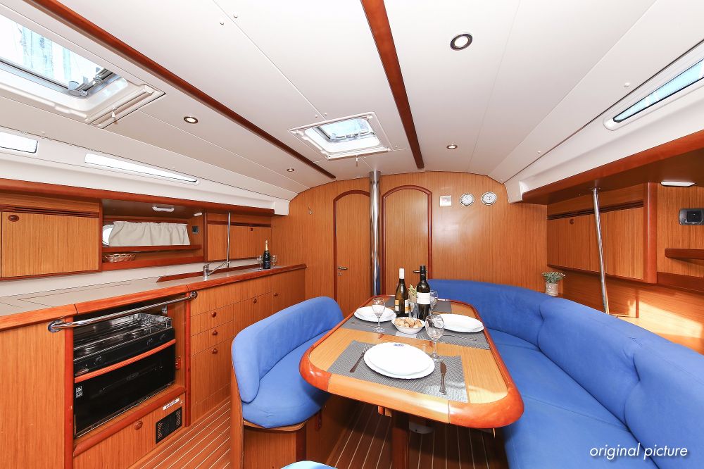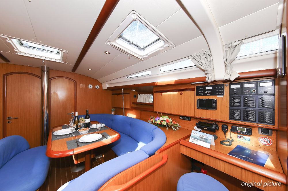 | Inside | 2. Kühlschrank, Borduhr, Dusche, Kühlschrank, Ladegerät, Luftpumpe für Beiboot, Pantryausstattung, Radio mit CD, MP3, AUX-In, Salontisch absenkbar, Warmwasser |