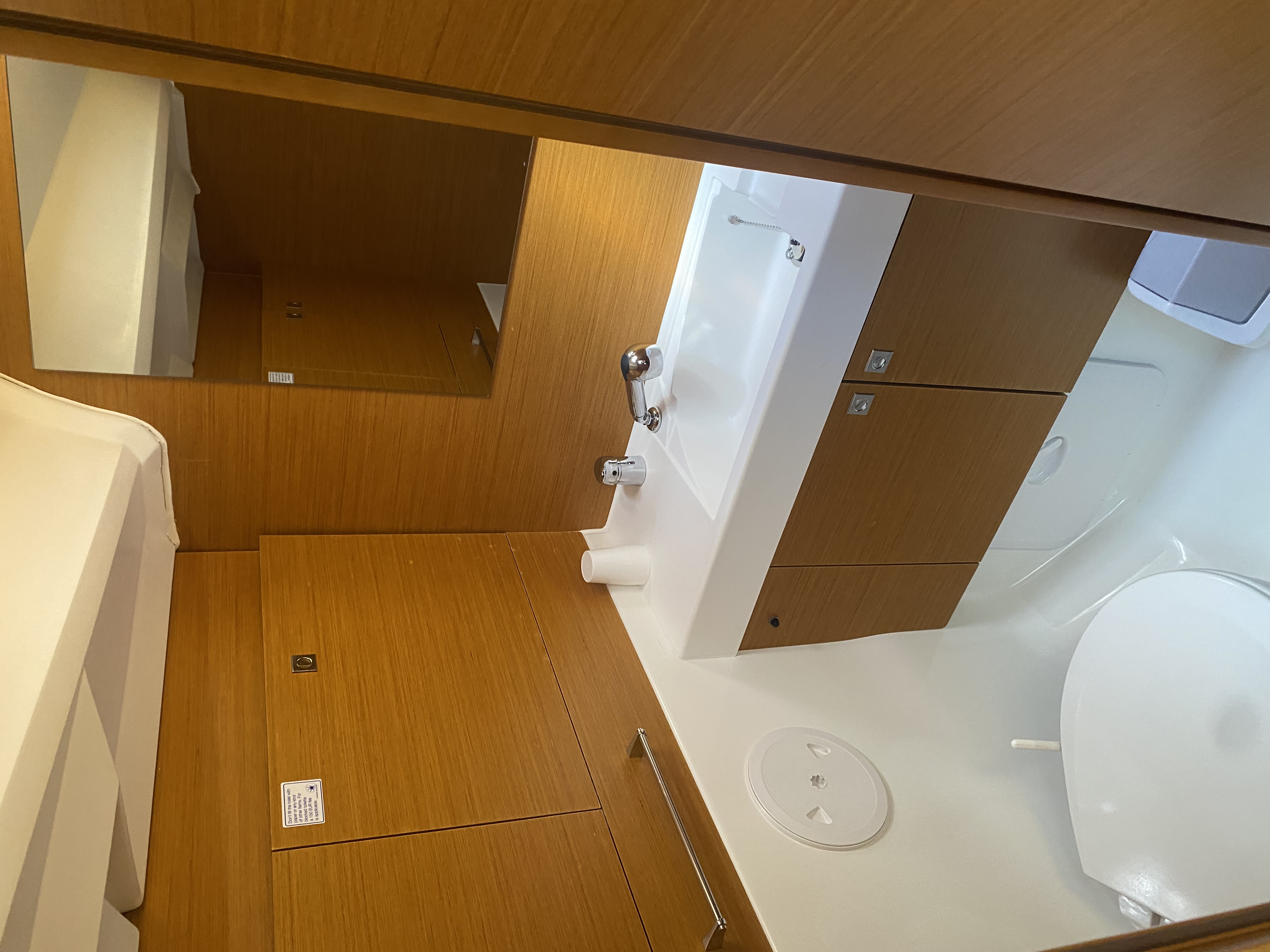 | Safety | Autopilot, Bordapotheke, Bordwerkzeug, Bugstrahlruder, elektr. Bilgepumpe, Feststoffschwimmwesten, Feuerlöscher, Flaggen, Löschdecke, Navigationslichter, Nebelhorn, Radarreflektor, Taschenlampe, UKW-Funk m. DSC |