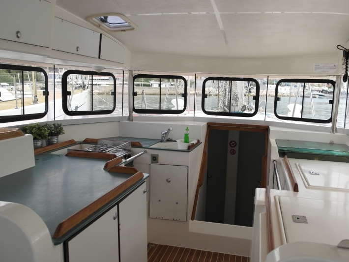 | Inside | 2. Kühlschrank, Dusche, Fäkalientank, Gasherd mit Backofen, Inverter 12V/220V, Ladegerät, LED-Innenleuchten, Radio mit CD und AUX-Eingang, Spülbecken, USB Steckdosen in den Kabinen, Ventilatoren in Kabinen, Warmwasser |