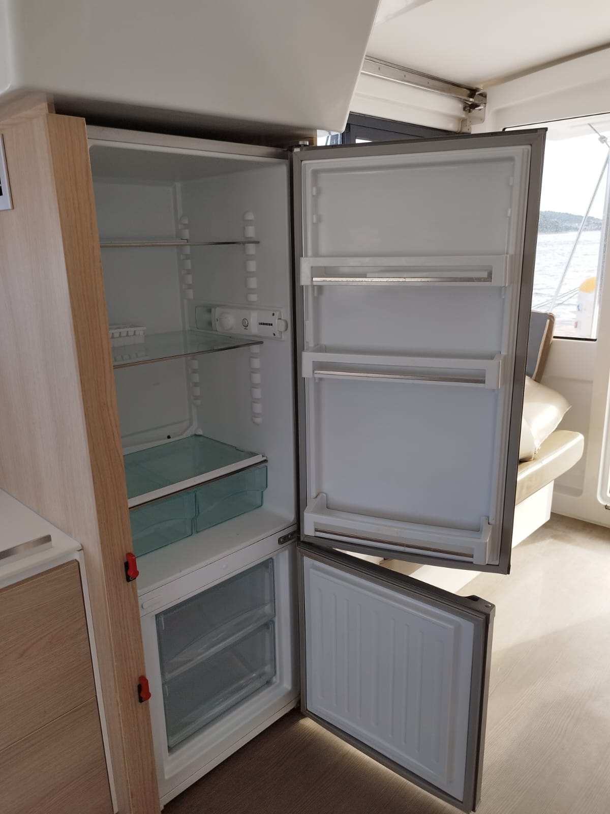 | Inside | Borduhr, Fäkalientank, Gasherd, Heizung, Hi-Fi System, Inverter 12V/220V, Kaffeemaschine, Kühlschrank, Landstromkabel, Lautsprecher im Salon, Pantryausstattung, Safe für Wertsachen, Salontisch absenkbar, TV, USB Steckdosen in den Kabinen, Ventilatoren in Kabinen, Warmwasser |