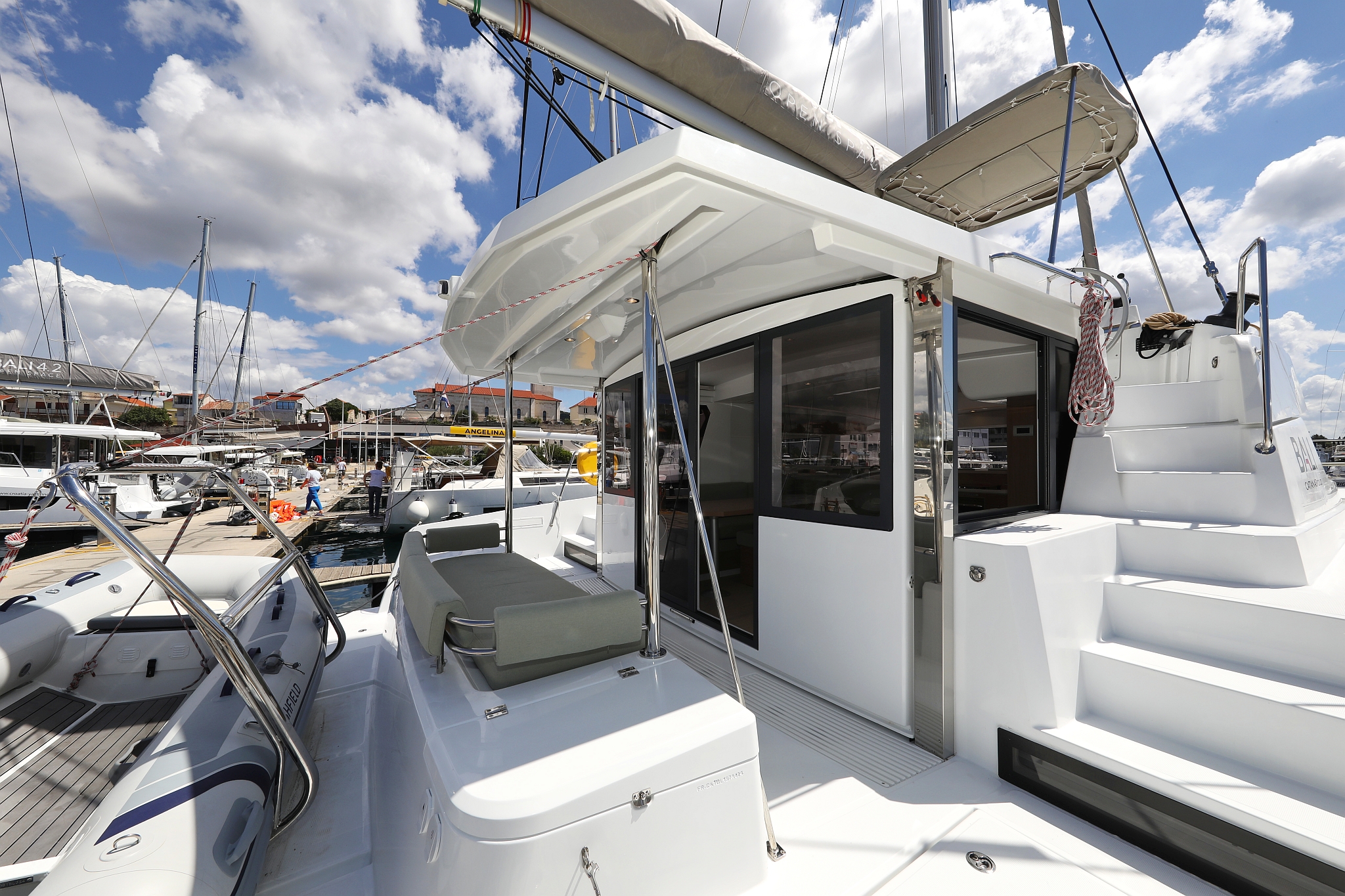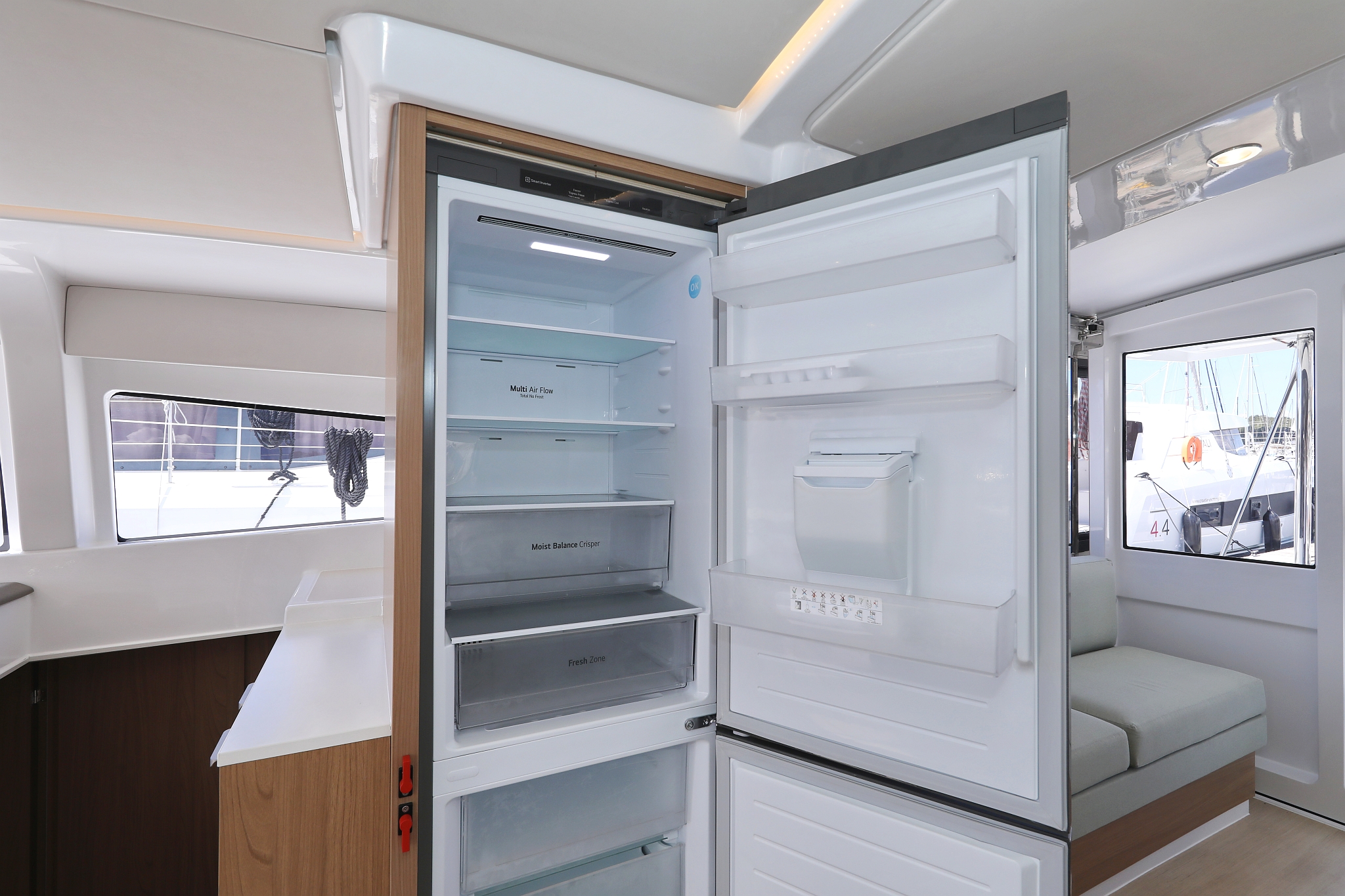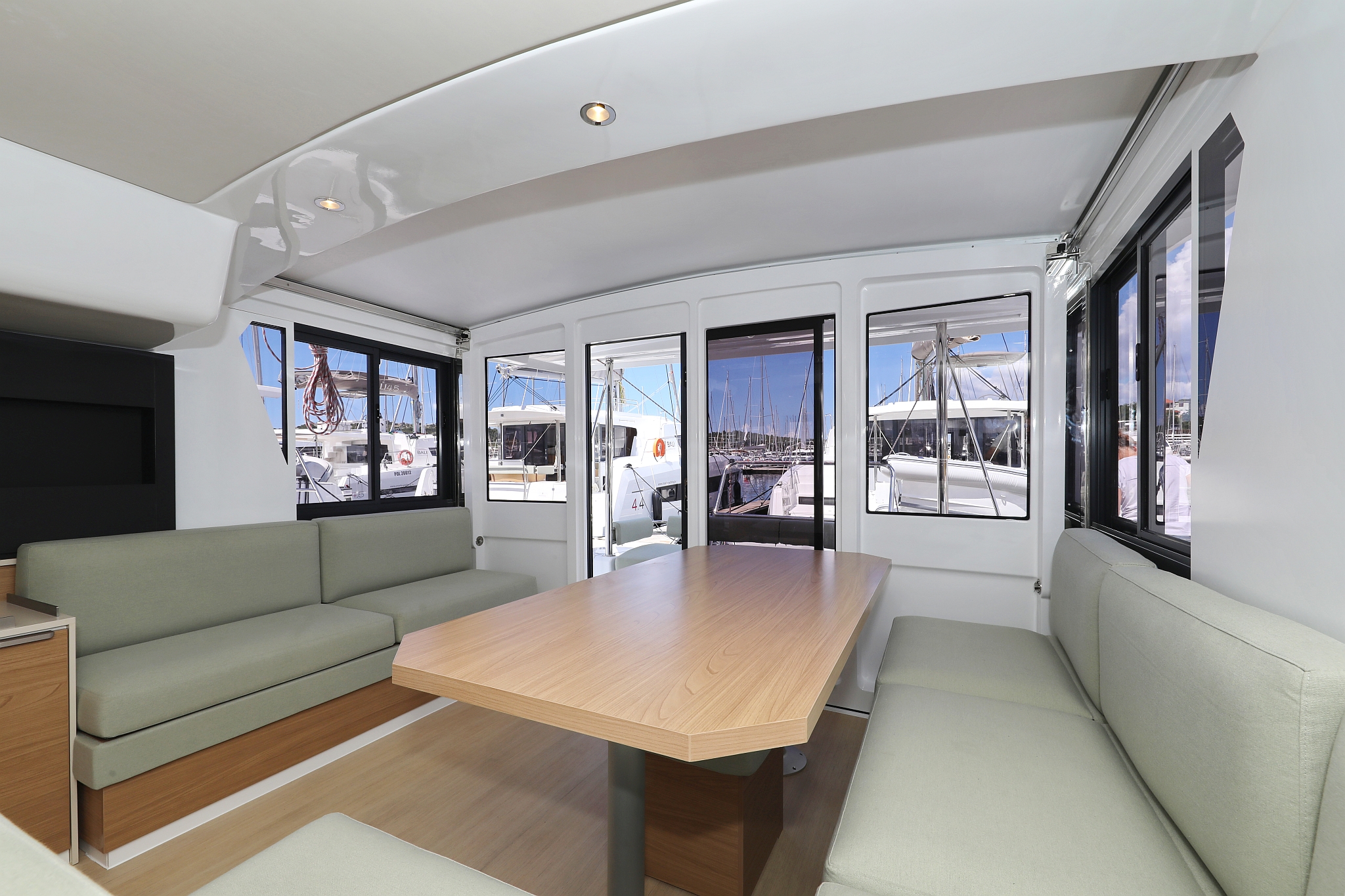 | Inside | 220V Steckdosen, FUSION Sound System, Gasherd mit Backofen, Heizung, Inverter 12V/220V, Klimaanlage (Landstrom), Kühlschrank mit Gefrierfach, Ladegerät, Mokkakanne, Moskitonetze, Radio mit Bluetooth, Spülbecken, USB Steckdose, Ventilatoren in Kabinen, Wasserkocher, WC (elektr.) |
