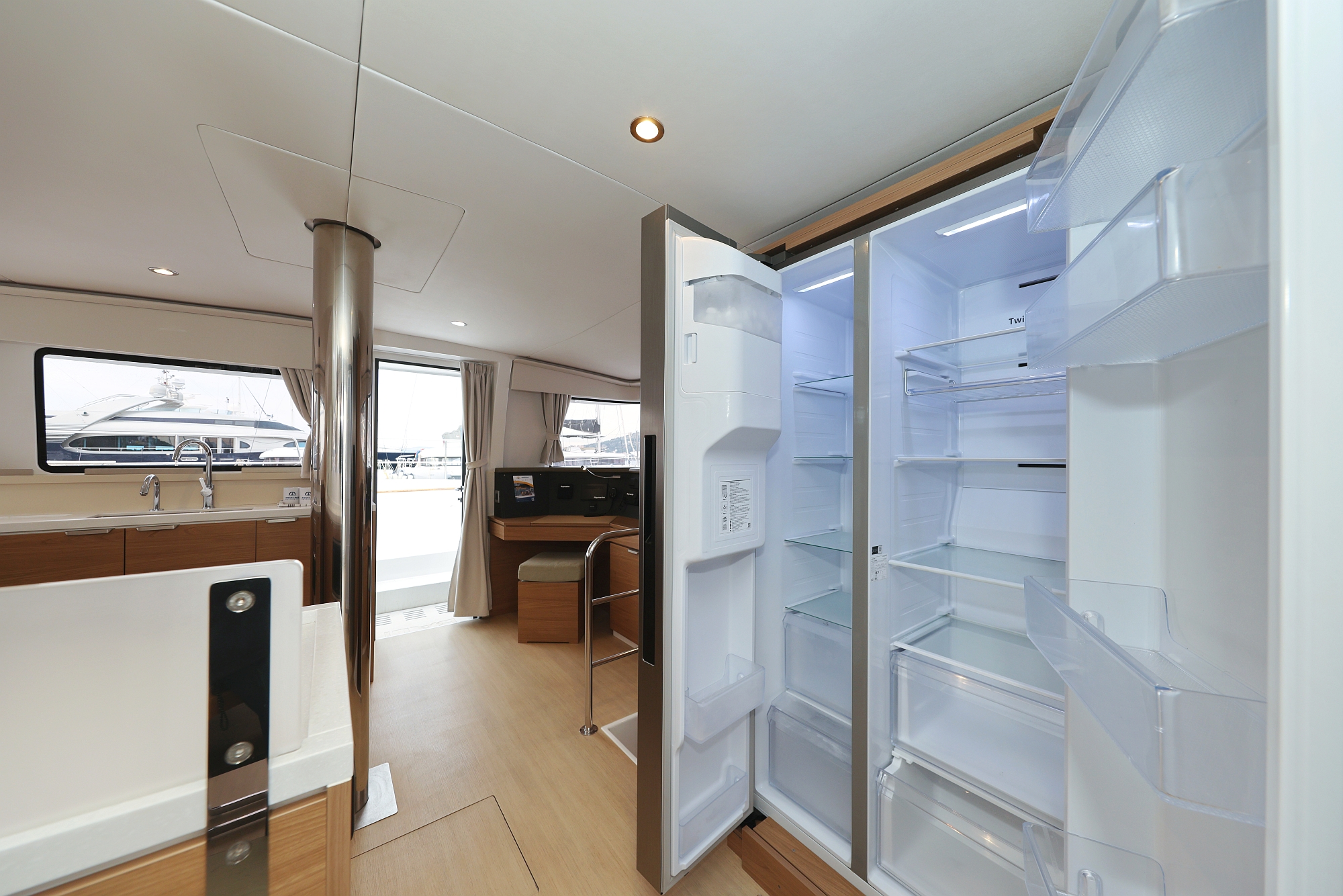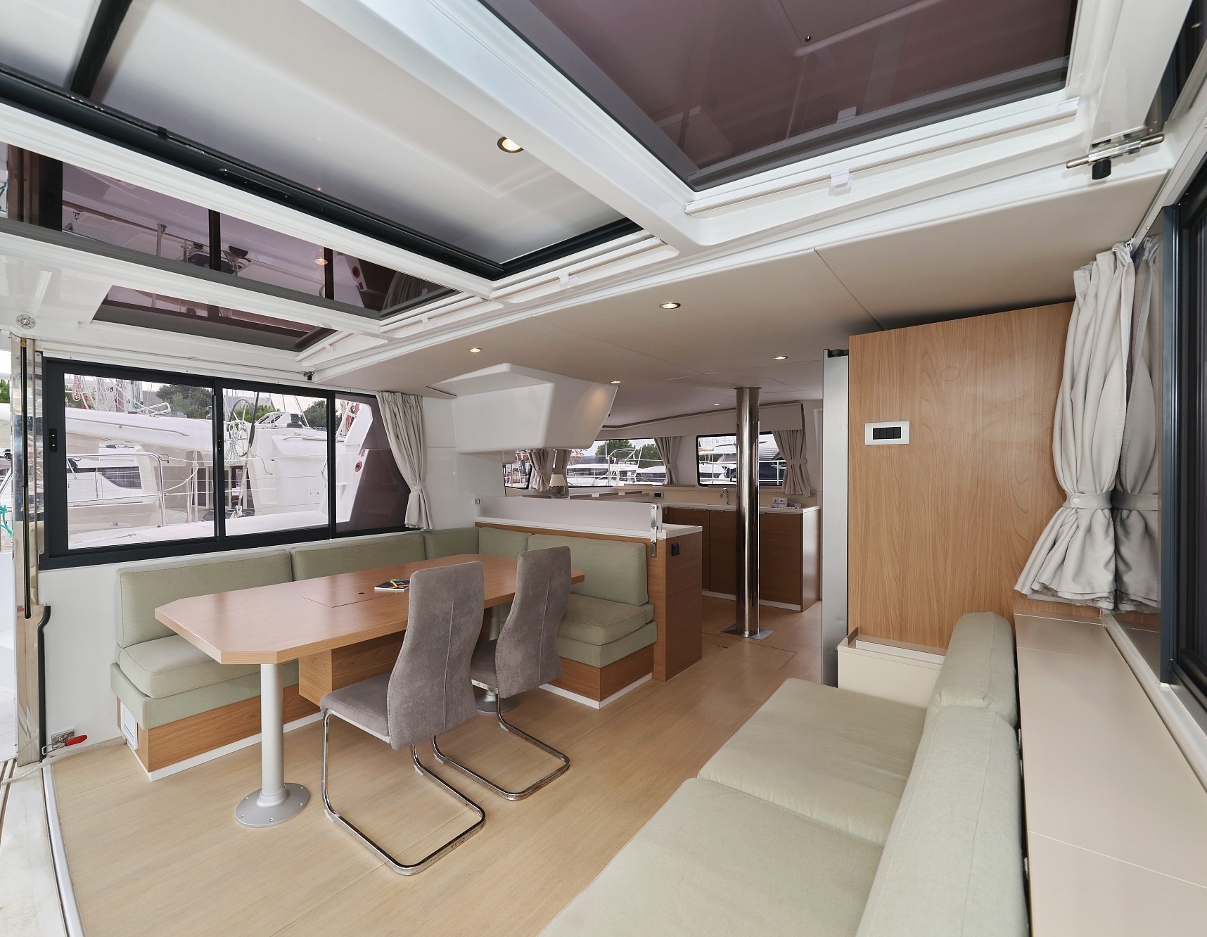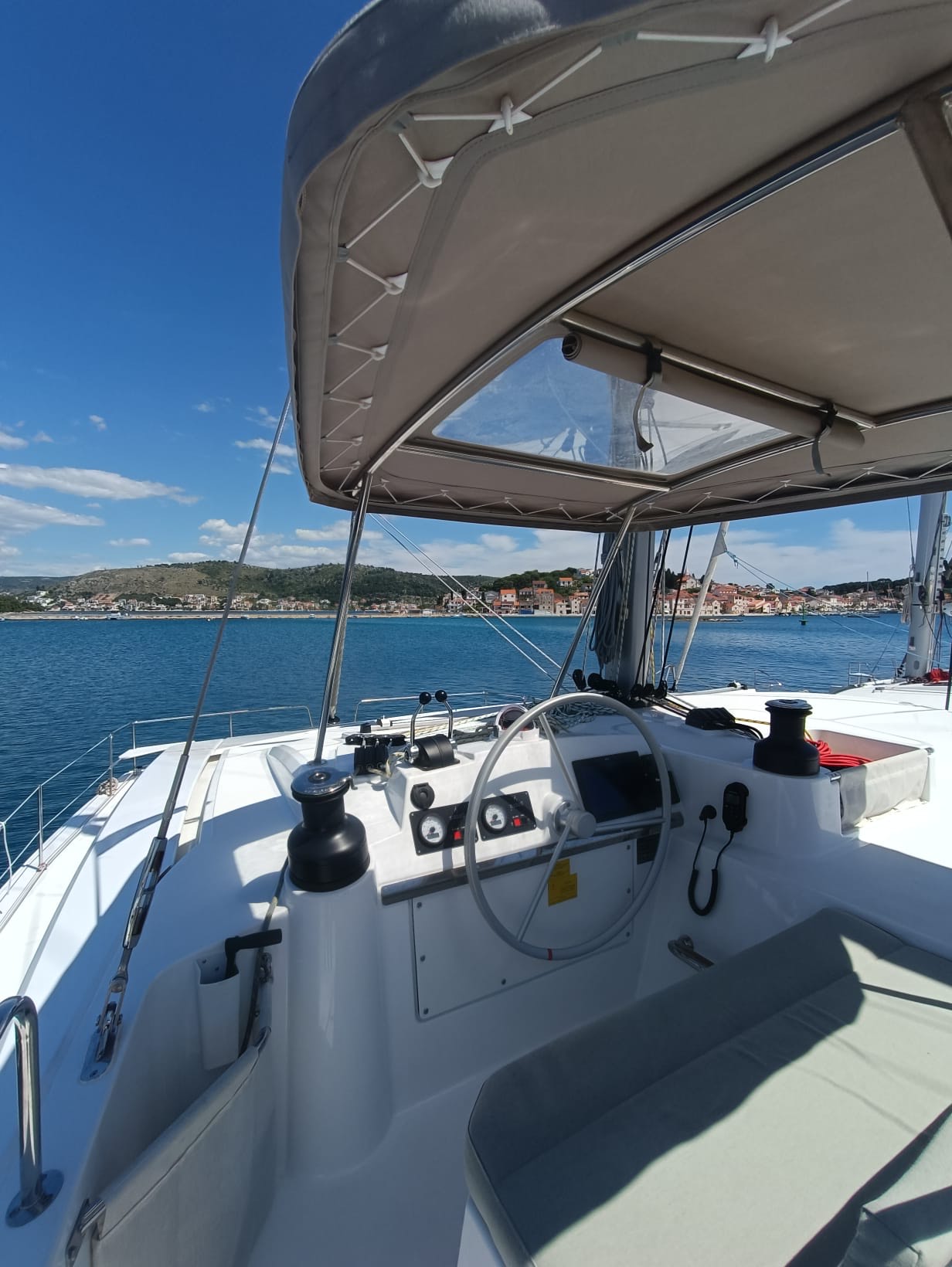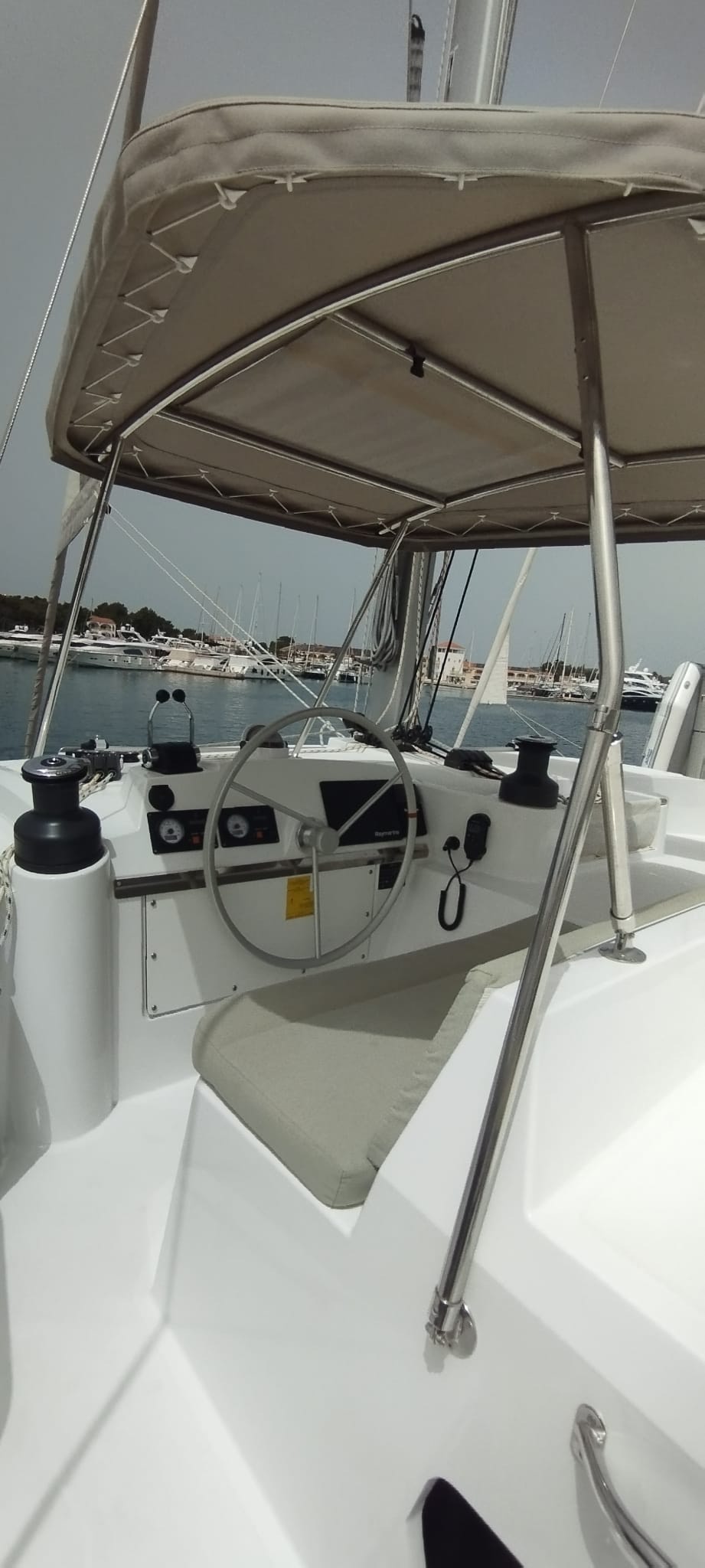 | Outside | 220 V-Landanschluss, Biminitop, Bootshaken, Cockpitdusche, Cockpitpolster, Cockpittisch, elektr. Ankerwinsch, elektr. Winsch, Fender, Gangway, Grill, Solaranlage, Sonnendeck, Winschen |
