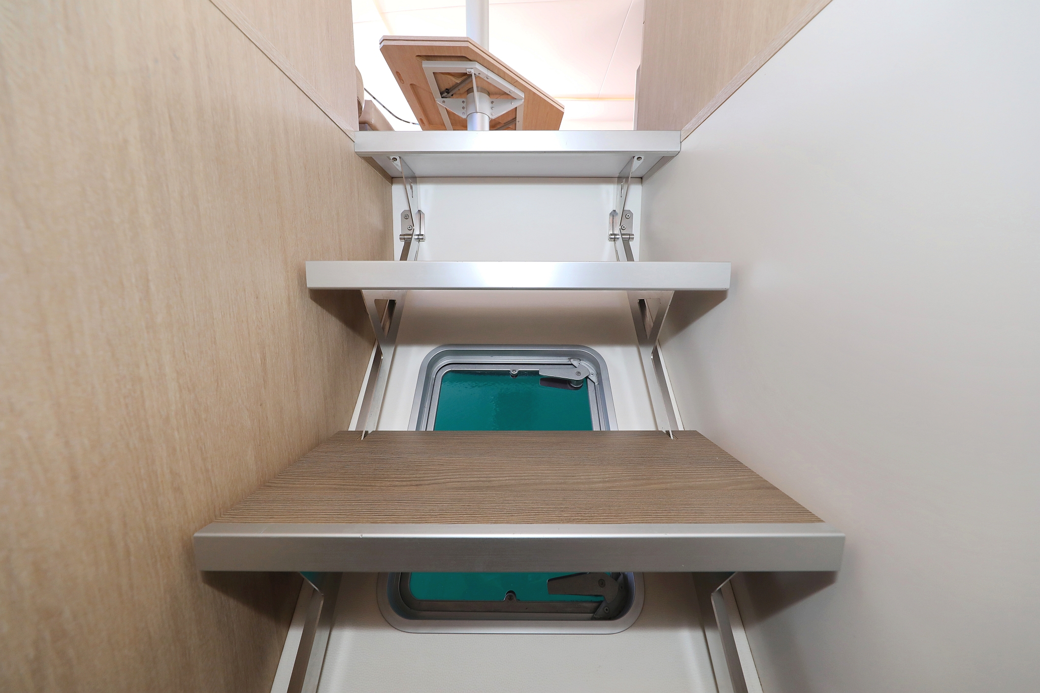 | Inside | 220V Steckdosen, Backofen, Borduhr, Eiswürfelmaschine, Fäkalientank, Gasherd, Gefrierschrank, Generator, Geschirrspüler, Heizung, Hi-Fi System, Inverter 12V/220V, Kaffeemaschine, Klimaanlage (ohne Landstrombedarf), Kühlschrank, Ladegerät, Mikrowelle, Mokkakanne, Pantryausstattung, Radio mit CD, MP3, AUX-In, Spülbecken, Warmwasser, Wasserkocher |