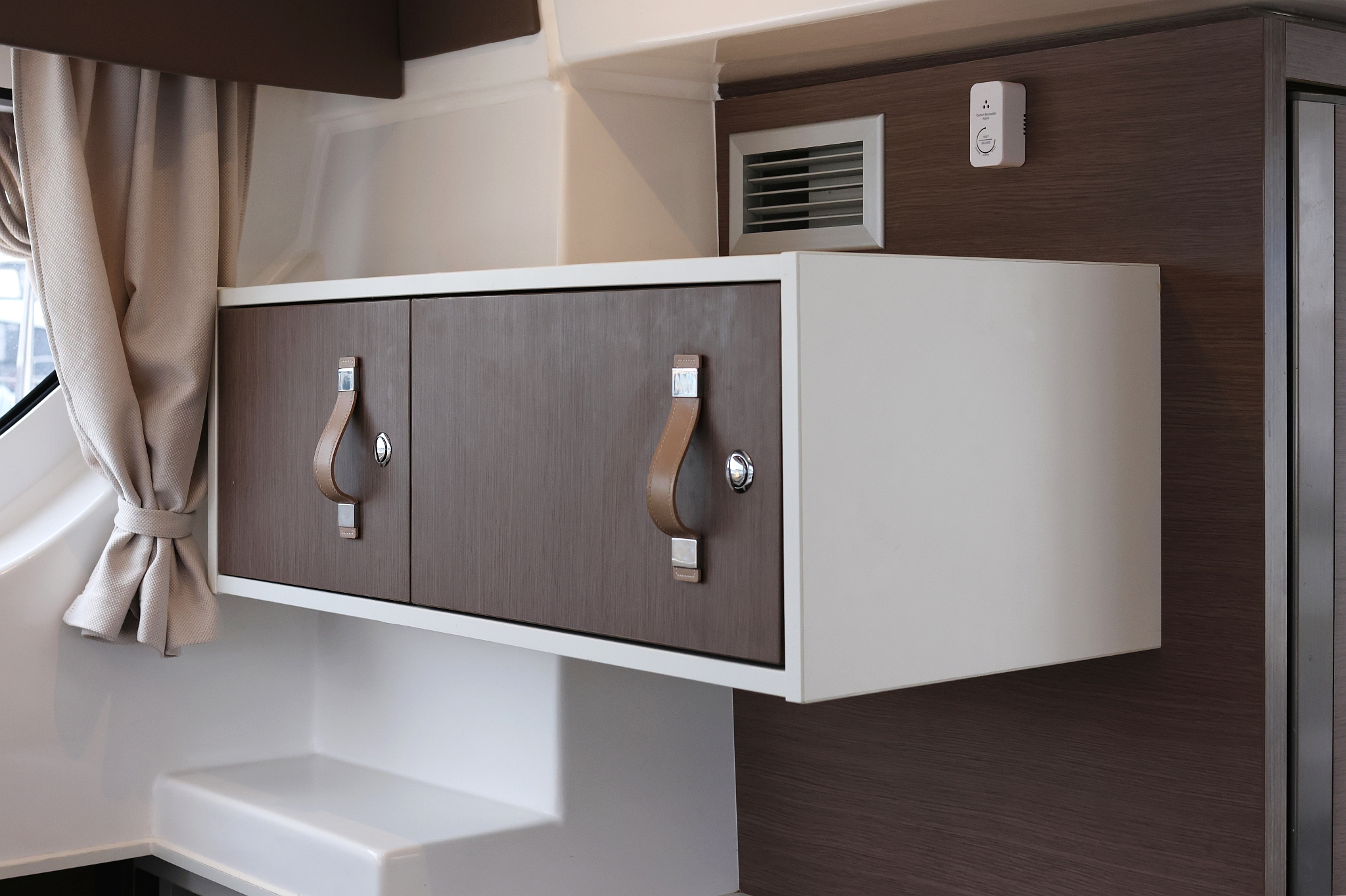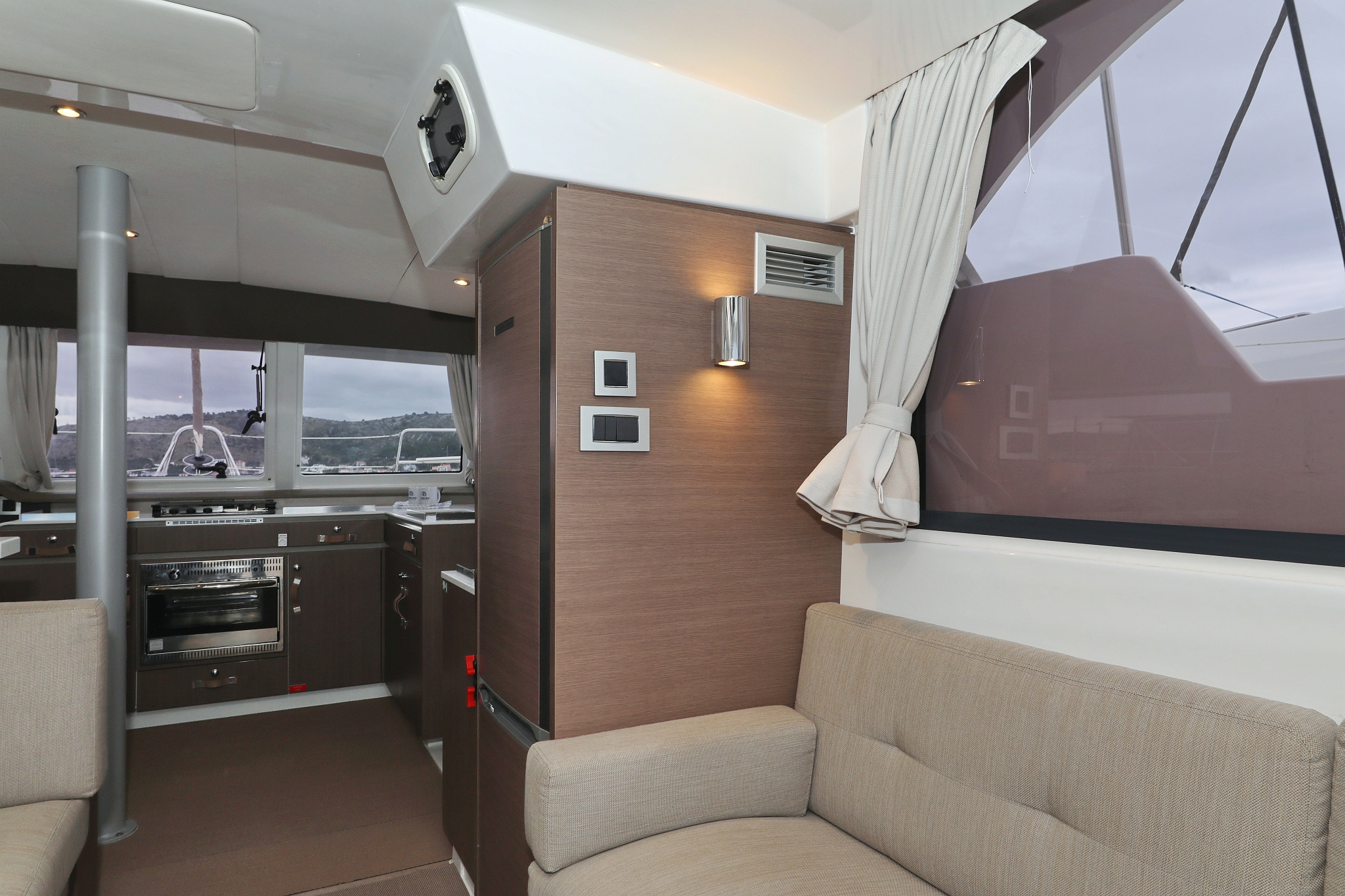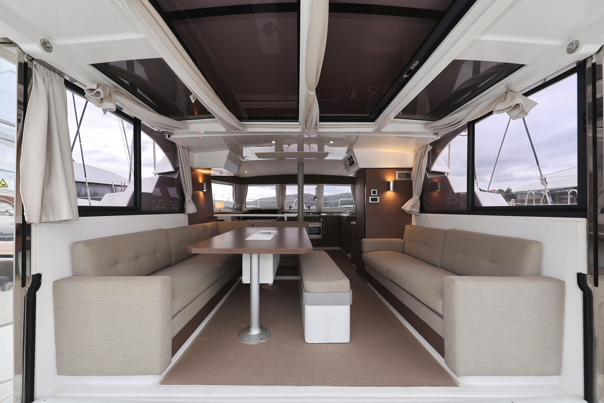 | Inside | 220V Steckdosen, Elektrische Filterkaffeemaschine, Fäkalientank, Gasherd mit Backofen, Gefrierschrank, Heizung, Inverter 12V/220V, Klimaanlage (Landstrom), Kühlschrank mit Gefrierfach, Ladegerät, Mokkakanne, Pantryausstattung, Radio mit Bluetooth, Spülbecken, USB Steckdosen in Salon und Kabinen, Ventilatoren in Kabinen, Wasserkocher, WC (elektr.) |