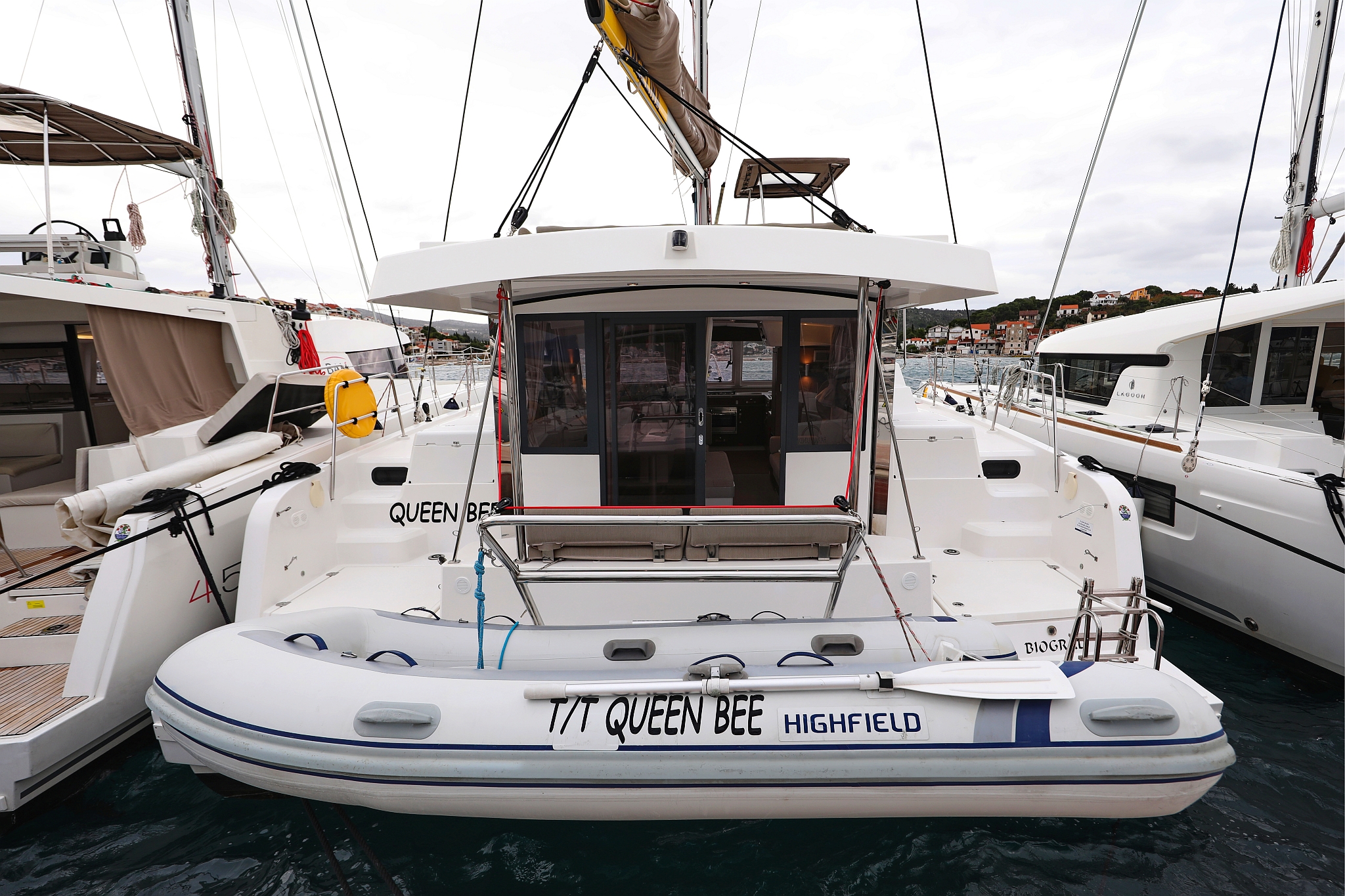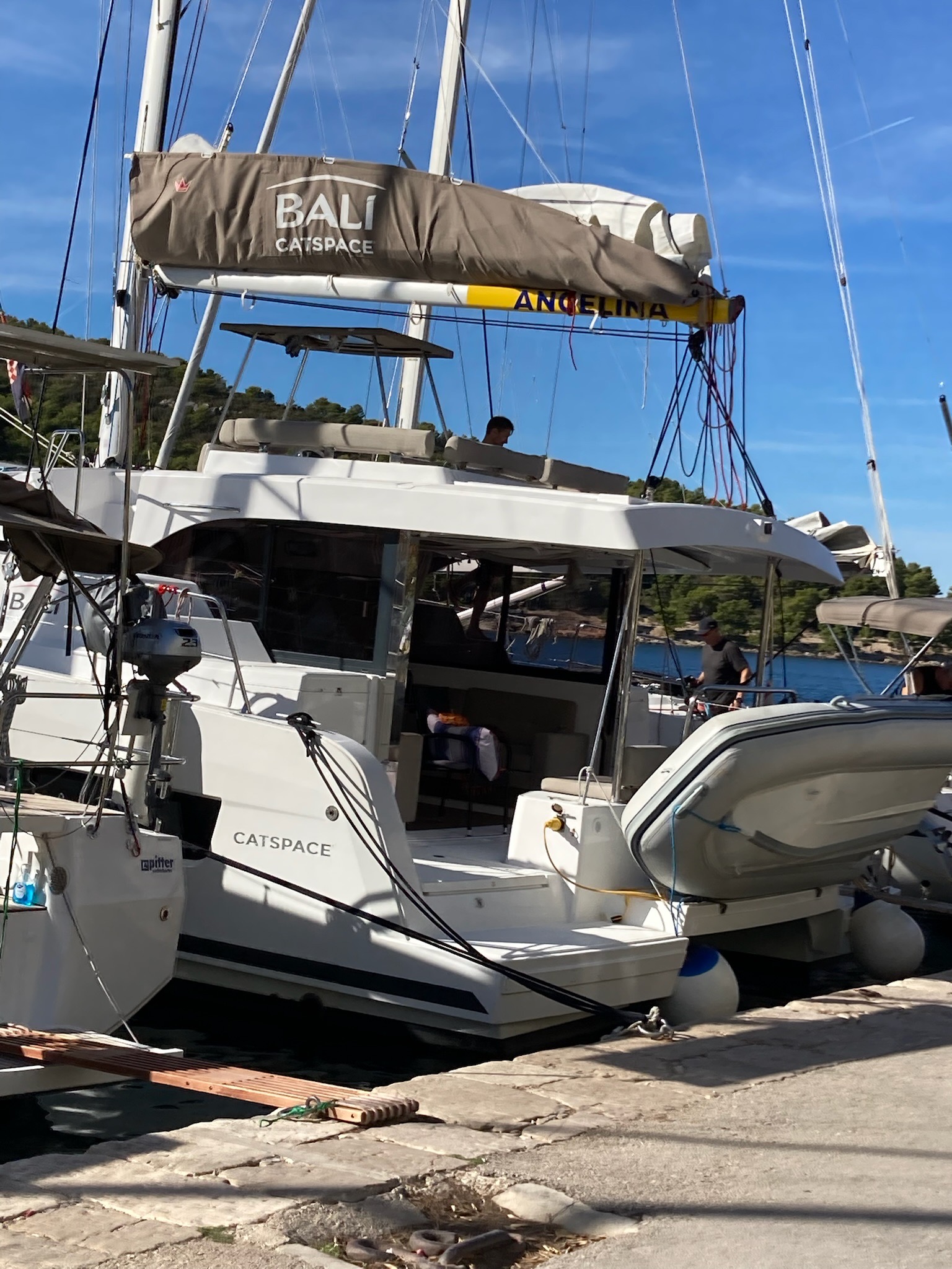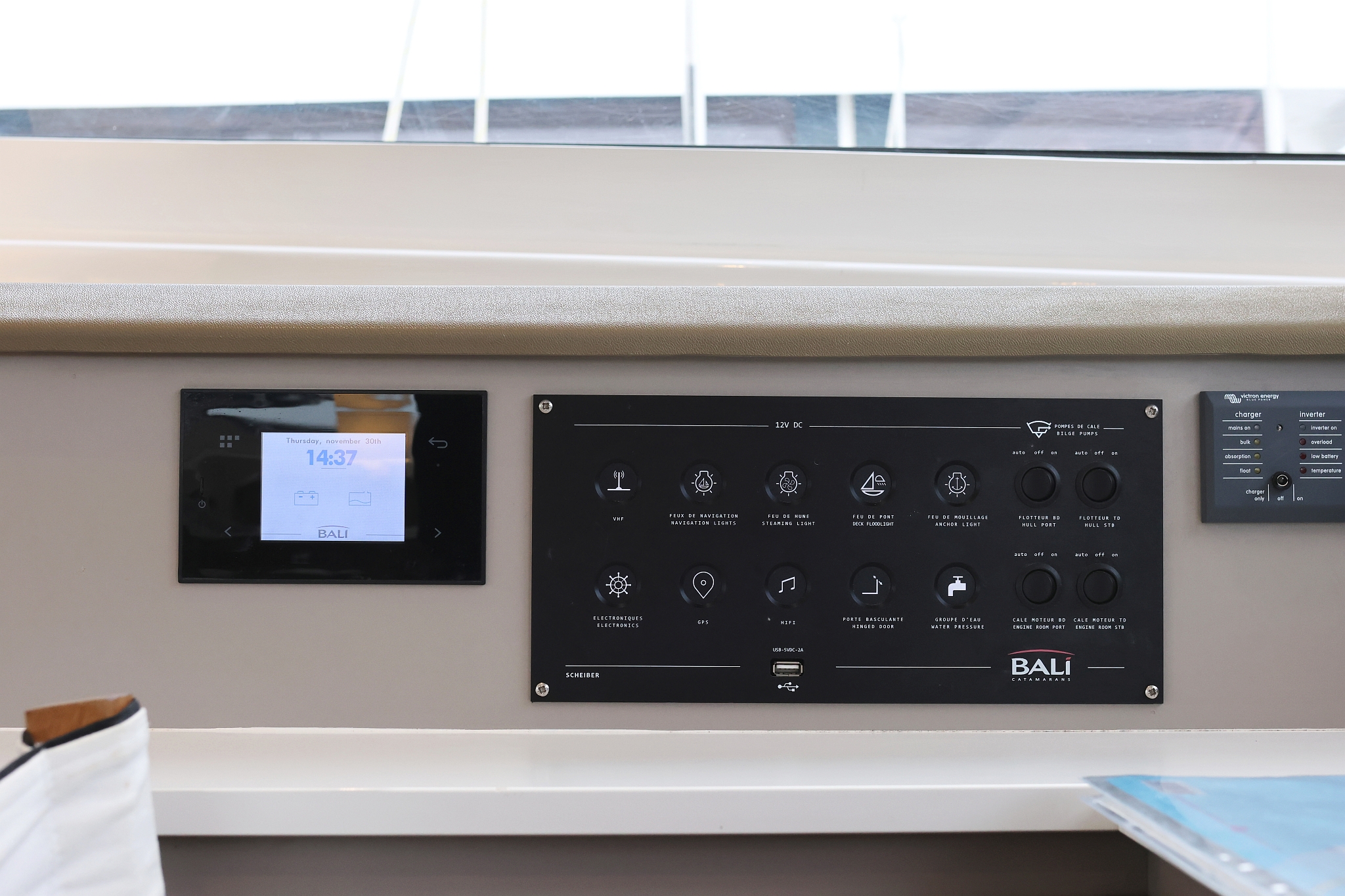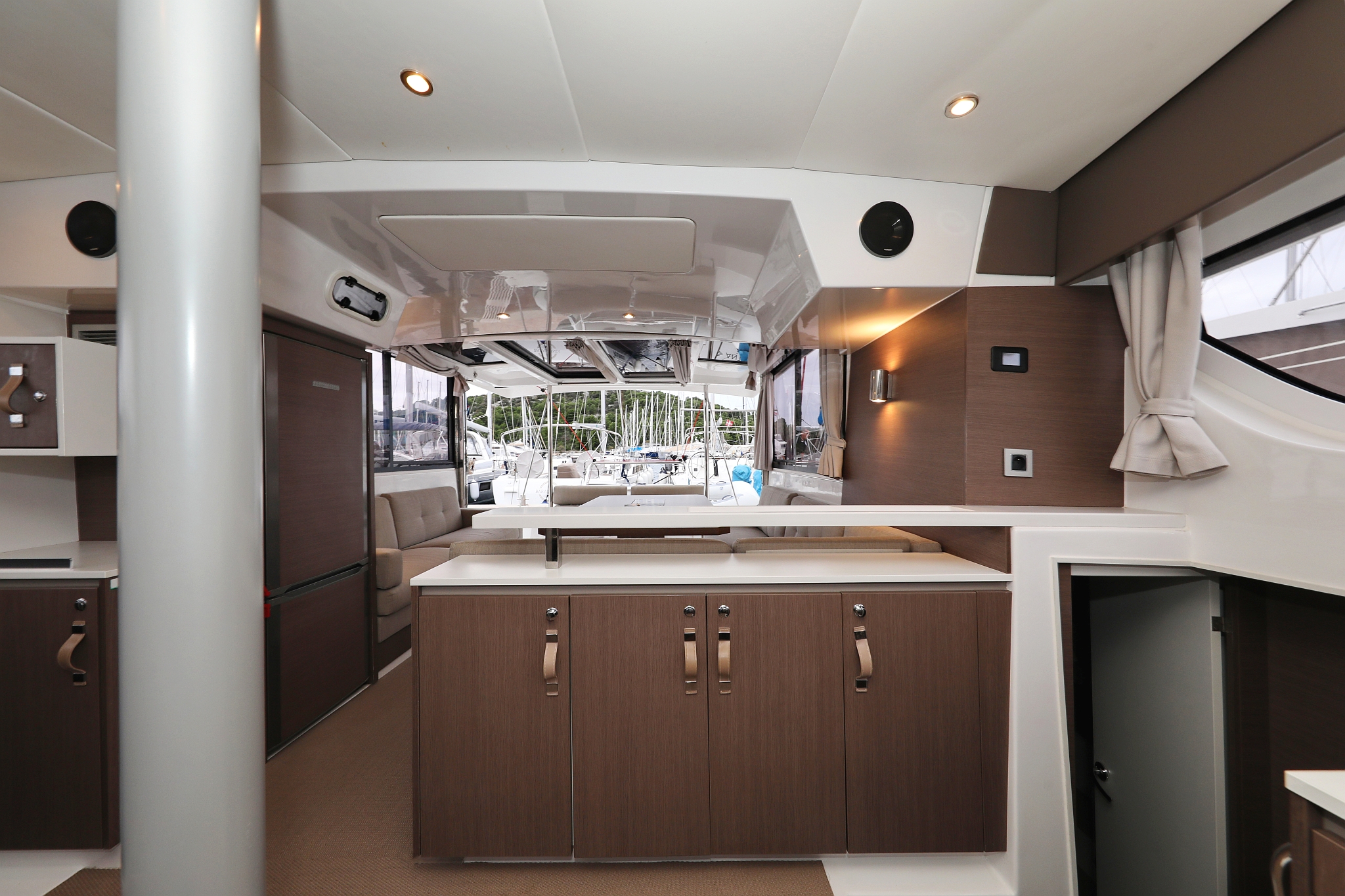 | Inside | 220V Steckdosen, Elektrische Filterkaffeemaschine, Fäkalientank, Gasherd mit Backofen, Gefrierschrank, Heizung, Inverter 12V/220V, Klimaanlage (Landstrom), Kühlschrank mit Gefrierfach, Ladegerät, Mokkakanne, Pantryausstattung, Radio mit Bluetooth, Spülbecken, USB Steckdosen in Salon und Kabinen, Ventilatoren in Kabinen, Wasserkocher, WC (elektr.) |