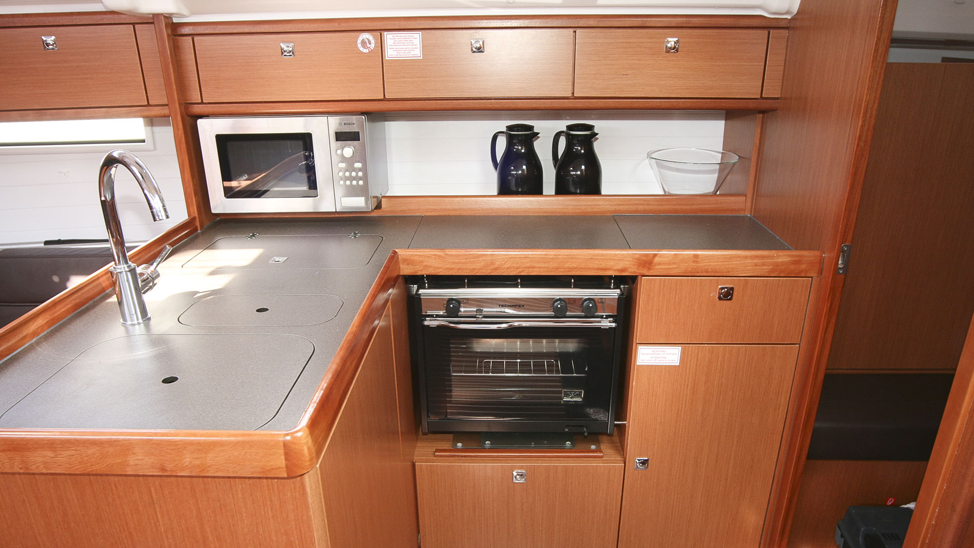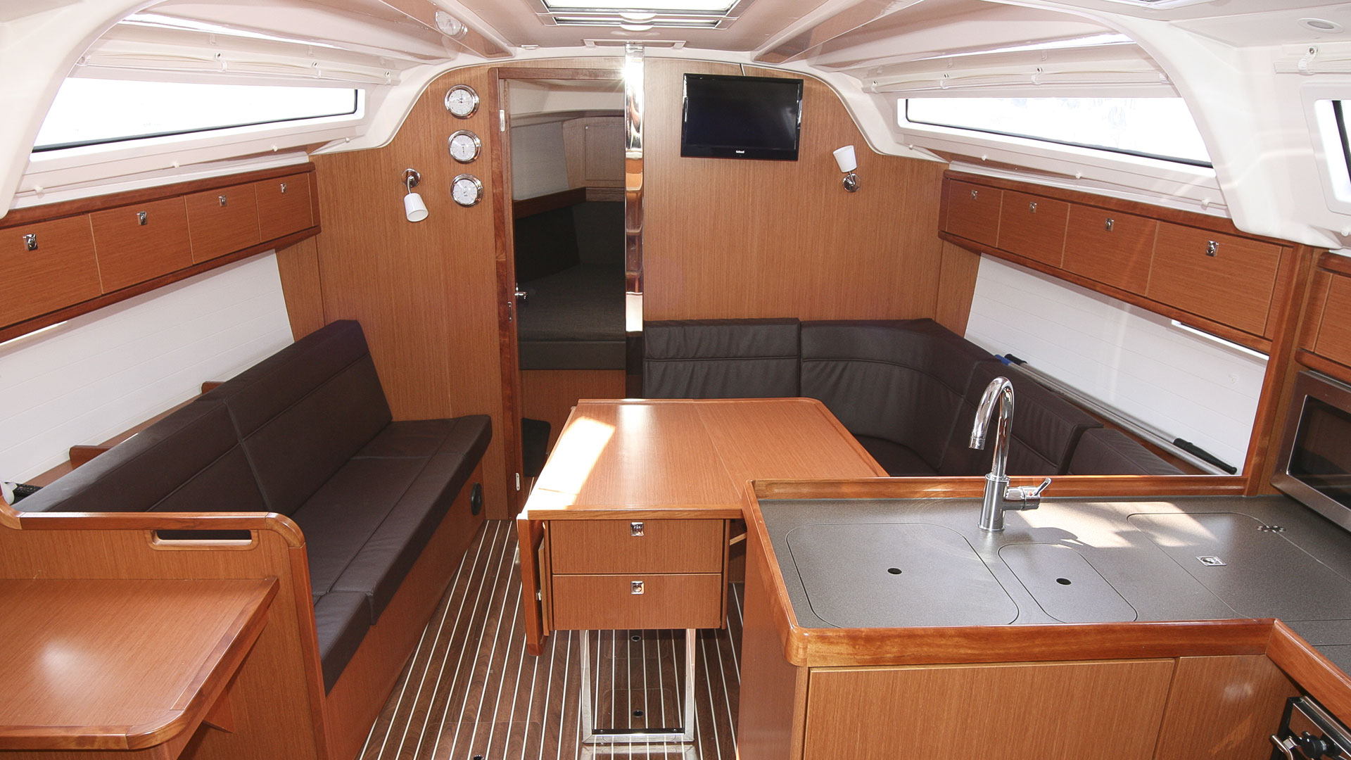 | Safety | AIS Empfänger, Automatikwesten, Autopilot, Blitzboje, Bordapotheke, Bordwerkzeug, Bugstrahlruder, elektr. Bilgepumpe, Feuerlöscher, Handbilgepumpe, Lifebelts, Nebelhorn, Notsignale, Radarreflektor, Rettungsinsel, Taschenlampe, UKW-Funk, Zweitanker |