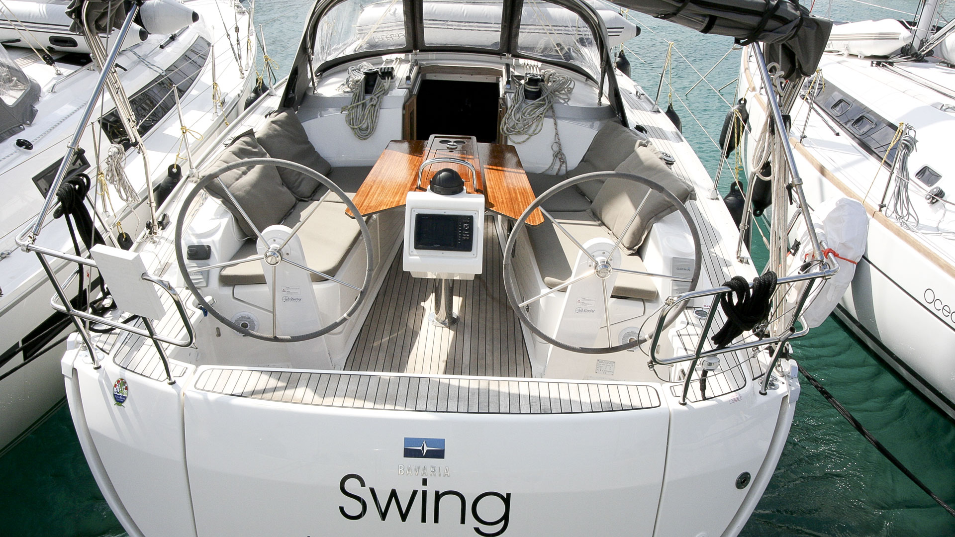 | Outside | 12 V-Anschluss, 220 V-Landanschluss, Anker mit Kette, Badeleiter, Biminitop, Bootshaken, Cockpitdusche, Cockpitlautsprecher, Cockpitpolster, Cockpittisch, elektr. Ankerwinsch, Fender, Festmacherleinen, Gangway, Kugelfender, Schnorchelausrüstung, Sprayhood, Teak im Cockpit, Teakdeck, Wasserschlauch, Winschen |