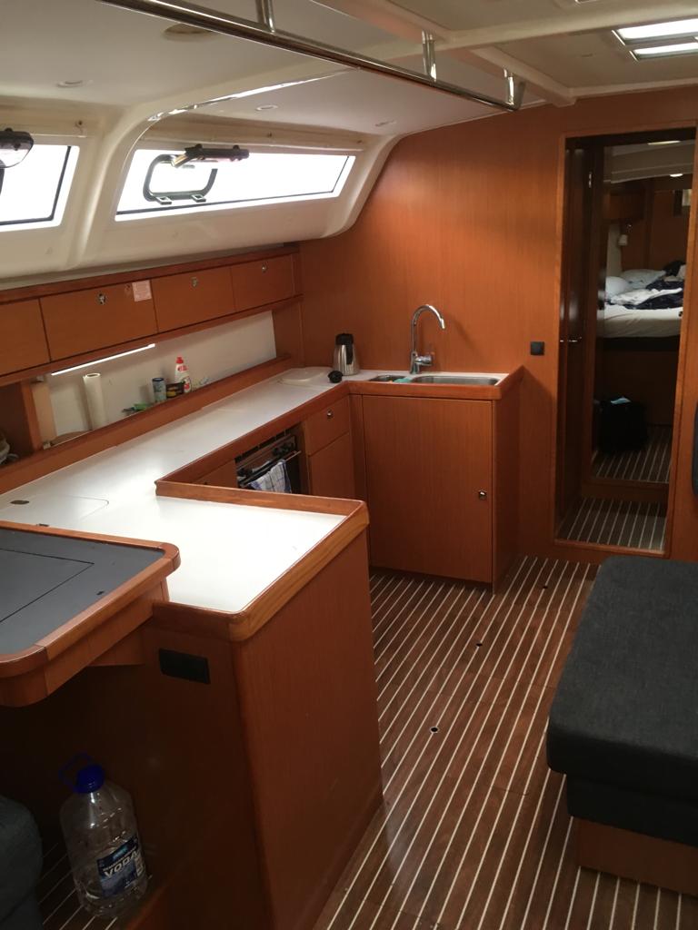 | Navigation | Barometer, elektr. Seekarten, Fernglas, GPS mit Kartenplotter im Cockpit, Hafenhandbücher, Handpeilkompass, Kompass, Navigationsbesteck, Tridata (Log, Echolot, Windm.) |
