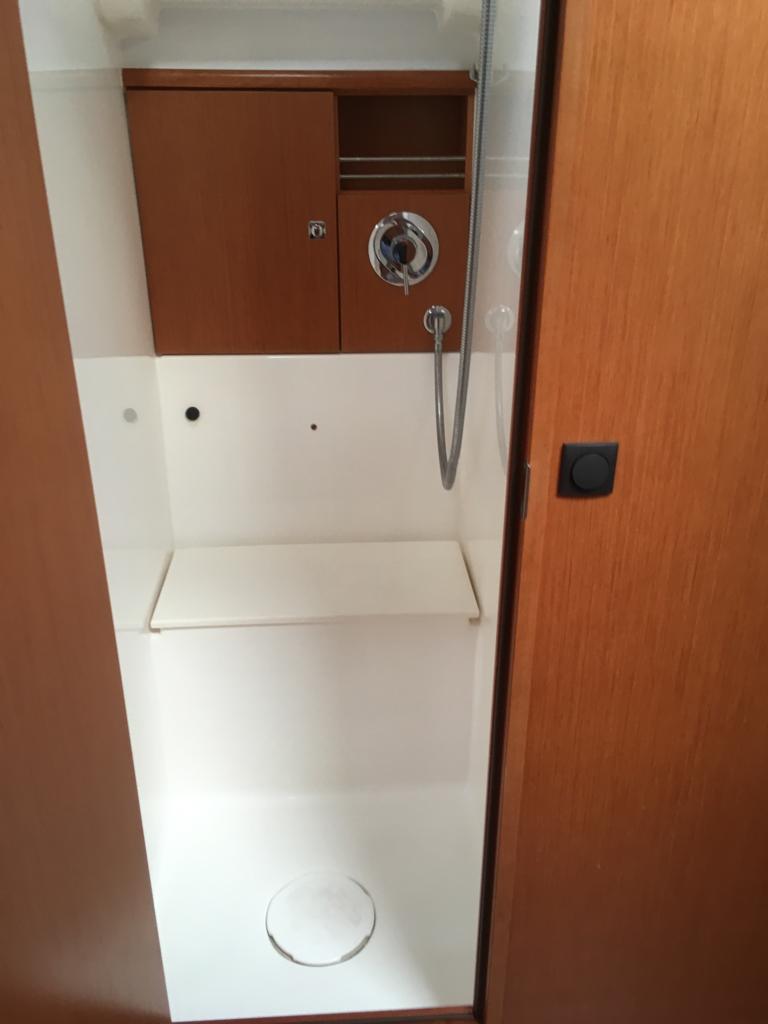 | Outside | Anker mit Kette, Badeleiter, Benzinkanister, Biminitop, Bootshaken, Cockpitdusche, Cockpitlautsprecher, Cockpitleuchte, Cockpittisch, Deckbeleuchtung, Deckbürste, elektr. Ankerwinsch, Fender, Festmacherleinen, Gangway, Kugelfender, Kunststoff-Eimer (Pütz), Sprayhood, Wasserkanister , Wasserschlauch, Windex, Winschen |