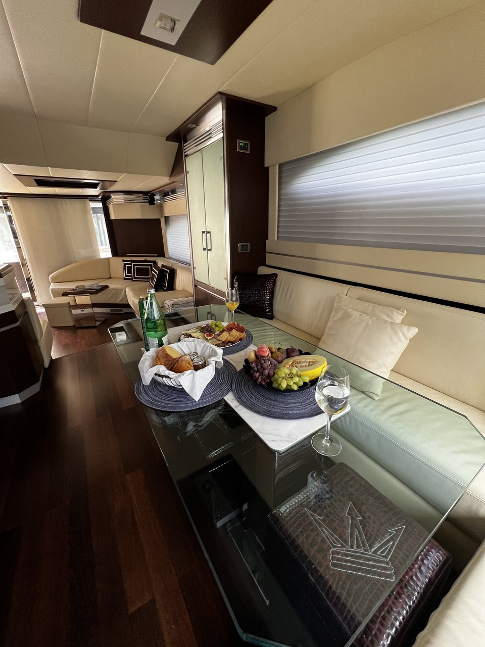 | Inside | Backofen, Eiswürfelmaschine, Gefrierschrank, Generator, Herd mit Ceranfeld, Hi-Fi System, Kaffeemaschine, Klimaanlage (ohne Landstrombedarf), Kühlschrank, Mikrowelle, TV, Watermaker |