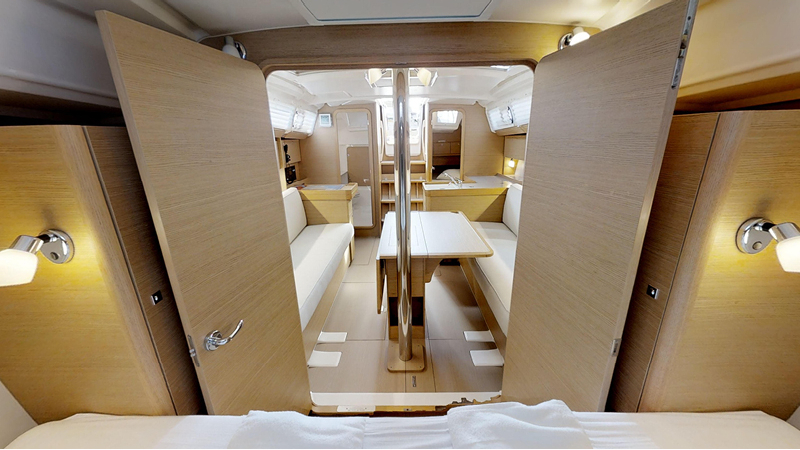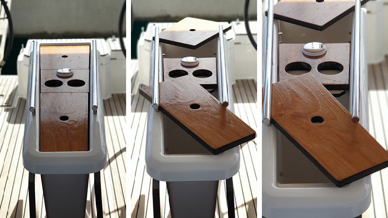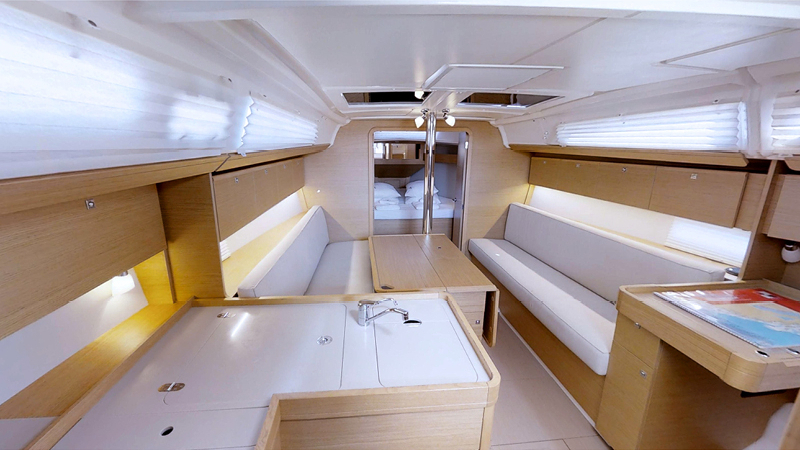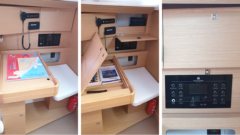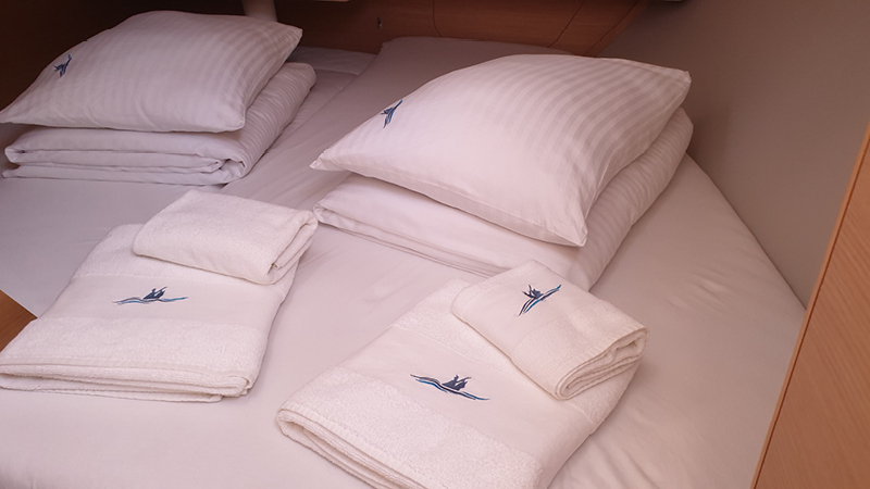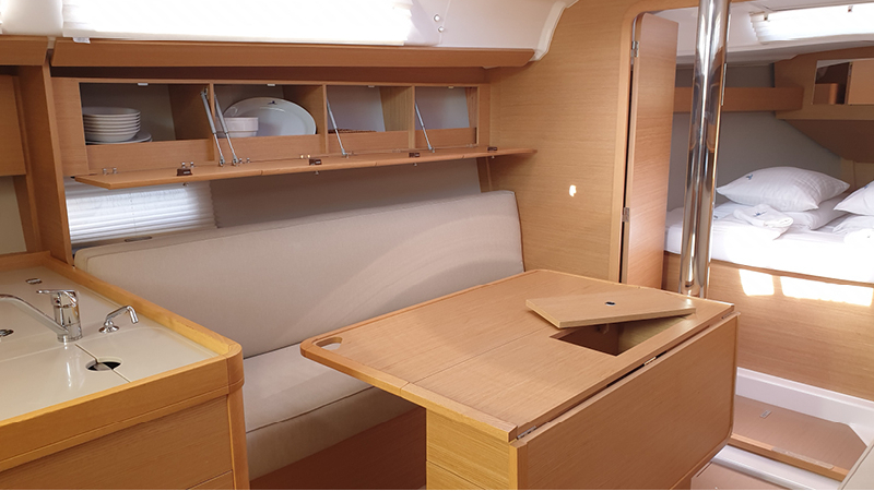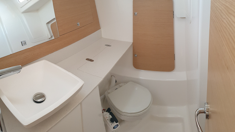 | Inside | 3-flammiger Gasherd, Fäkalientank, Inverter 12V/220V, Kleiderbügel, Kühlschrank, Landstromkabel, Lautsprecher im Salon, Luftpumpe für Beiboot, Pantryausstattung, Radio mit USB und Bluetooth, Salontisch absenkbar, Ventilatoren in Kabinen, Weinkühlschrank, Weinschrank |