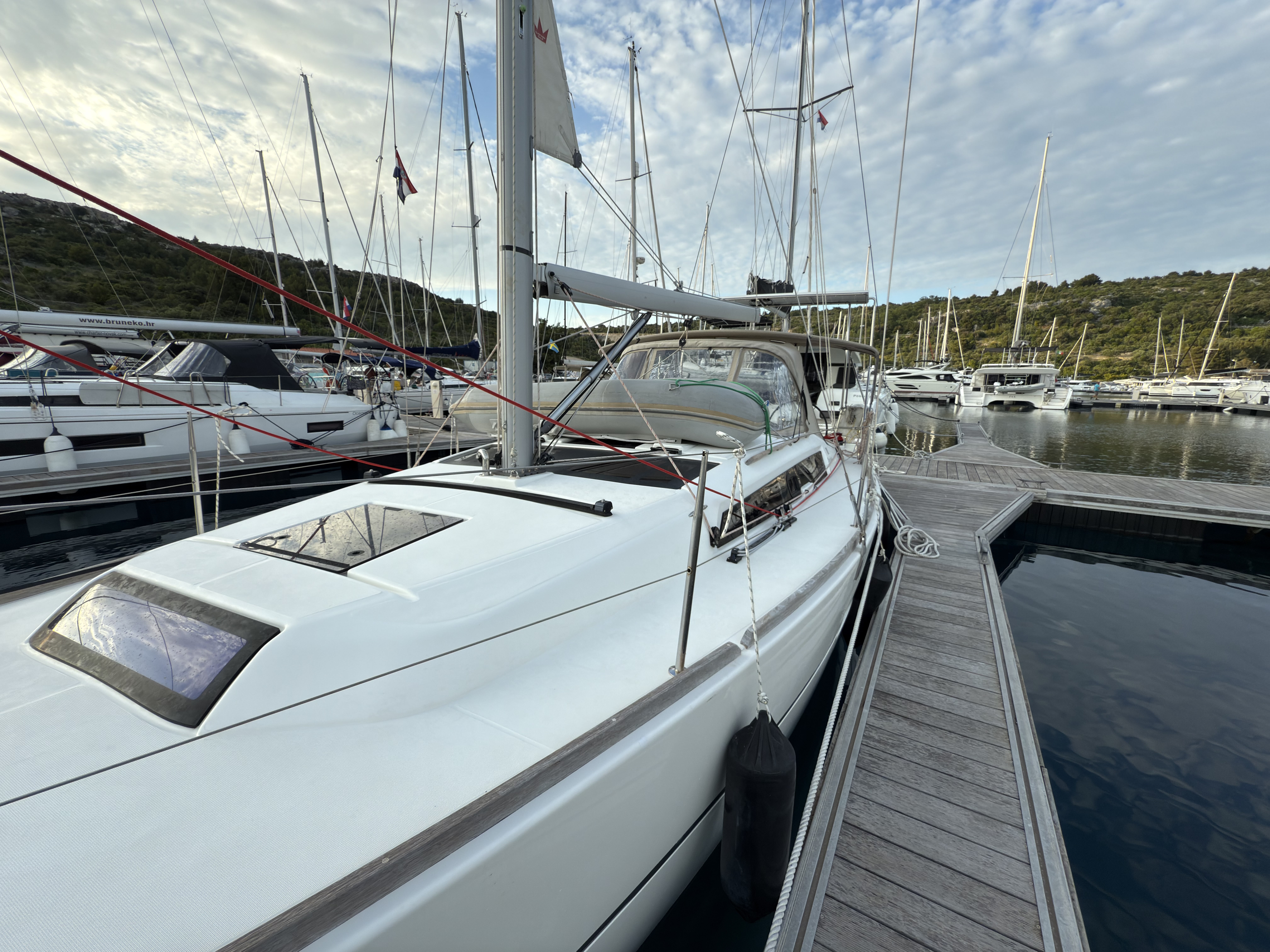 | Outside | 220 V-Landanschluss, Anker mit Kette, Badeplattform, Benzinkanister, Biminitop, Bootshaken, Cockpitdusche, Cockpitlautsprecher, Cockpitpolster, Cockpittisch, Deckbürste, Dieselkanister , elektr. Ankerwinsch, Fender, Festmacherleinen, Gangway, Grill, Kugelfender, Solaranlage, Sprayhood, Spülbecken im Cockpit, Teak auf Badeplattform, Teak im Cockpit, Wasserkanister , Wasserschlauch, Windex, Winschen |
