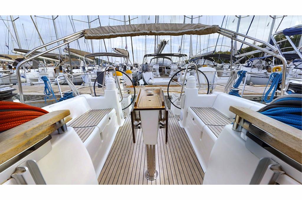 | Outside | 220 V-Landanschluss, Anker mit Kette, Biminitop, Cockpitdusche, Cockpitlautsprecher, Cockpitpolster, Cockpittisch, elektr. Ankerwinsch, Sprayhood, Teak im Cockpit, Windex |