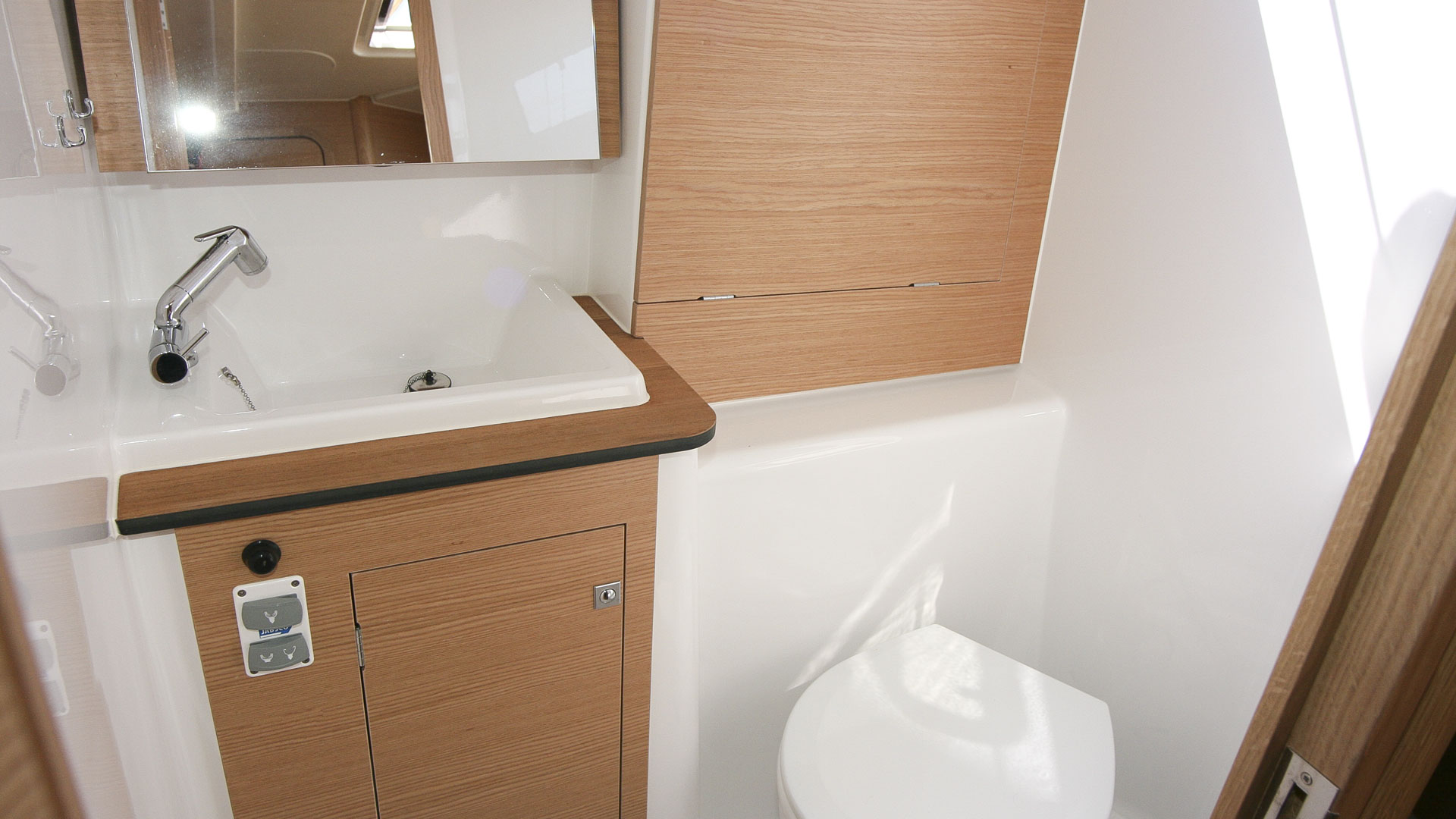 | Inside | Backofen, Borduhr, Fäkalientank, Gasherd, Heizung, Inverter 12V/220V, Kühlschrank, Ladegerät, Landstromkabel, Pantryausstattung, Radio mit CD, MP3, AUX-In, Safe für Wertsachen, Salontisch absenkbar, TV mit DVBT, USB Steckdose, Ventilatoren in Salon und Kabinen, Warmwasser, WC (elektr.) |