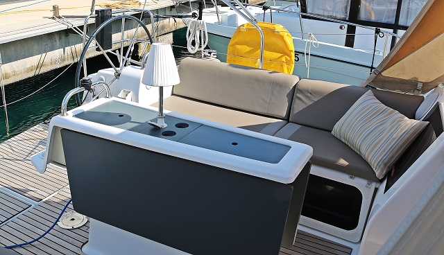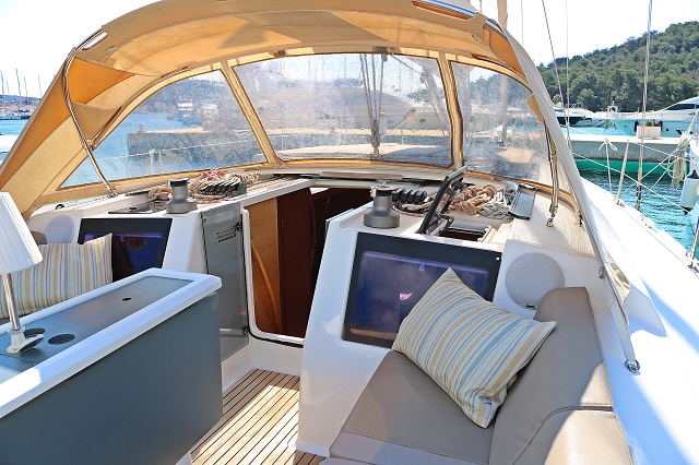 220 V-Landanschluss, Anker mit Kette, Ankerwinsch, Biminitop, Bootshaken, Cockpitdusche, Cockpitlautsprecher, Cockpitpolster, Cockpittisch, Cockpitverdeck, Dieselkanister , elektr. Ankerwinsch, Fender, Festmacherleinen, Gangway, Kugelfender, Kunststoff-Eimer (Pütz), Sprayhood, Teak im Cockpit, Wantenschneider, Wasserkanister , Wasserschlauch, Windex |