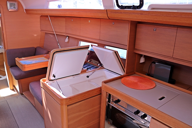 Borduhr, Inverter 12V/220V, Kühlschrank, Ladegerät, Luftpumpe für Beiboot, Nespresso-Maschine, Pantryausstattung, Radio mit CD oder MP3, Salontisch absenkbar, USB Steckdose, Ventilatoren in Kabinen, Warmwasser, WC (elektr.) |