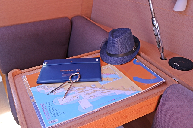 Barometer, Fernglas, GPS mit Kartenplotter im Cockpit, Hafenhandbücher, Navigationsbesteck, Seekarten, Tridata (Log, Echolot, Windm.) |